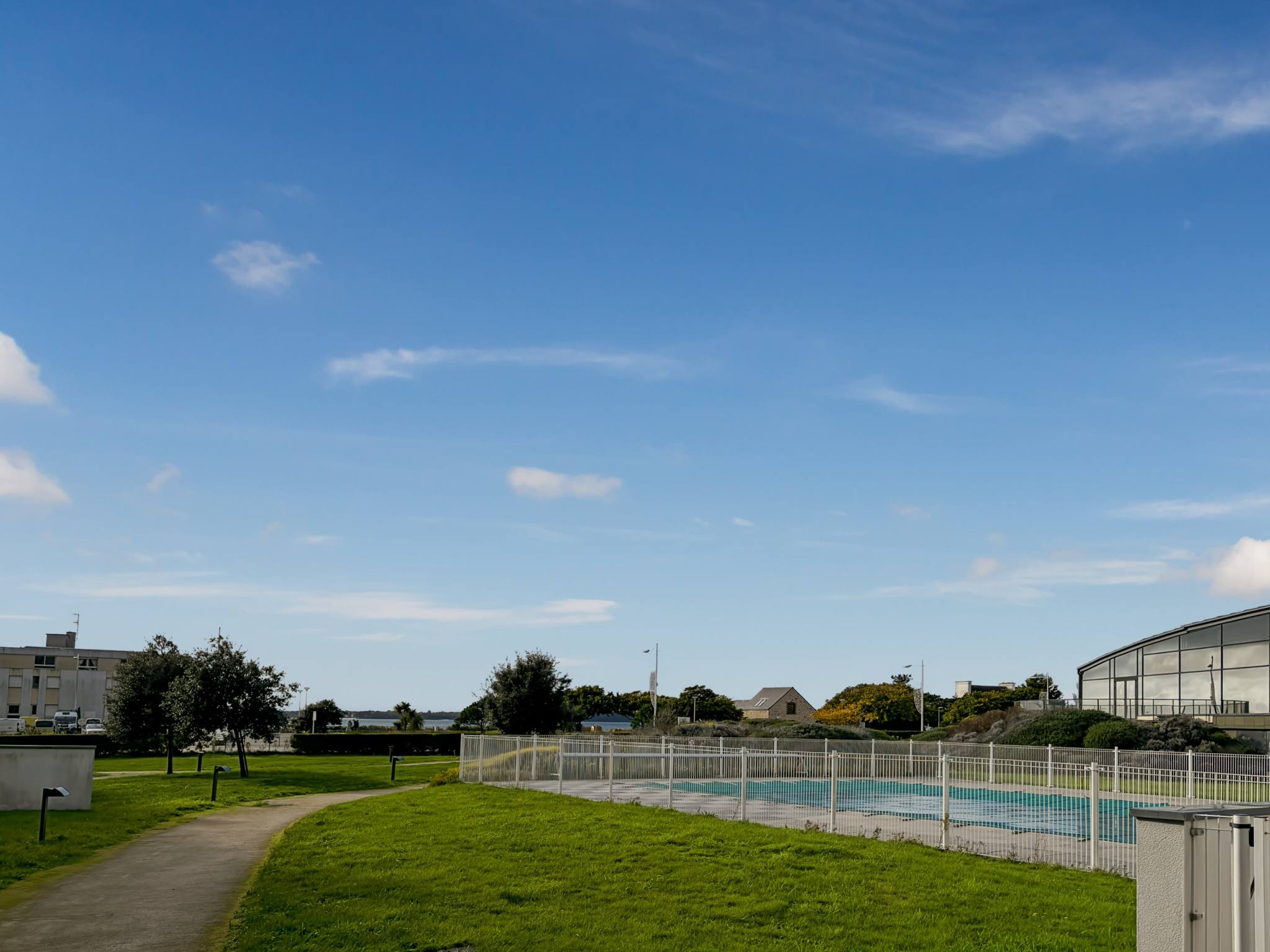La terrasse permet un accès direct à la piscine de la résidence. Parfait pour un investissement locatif.