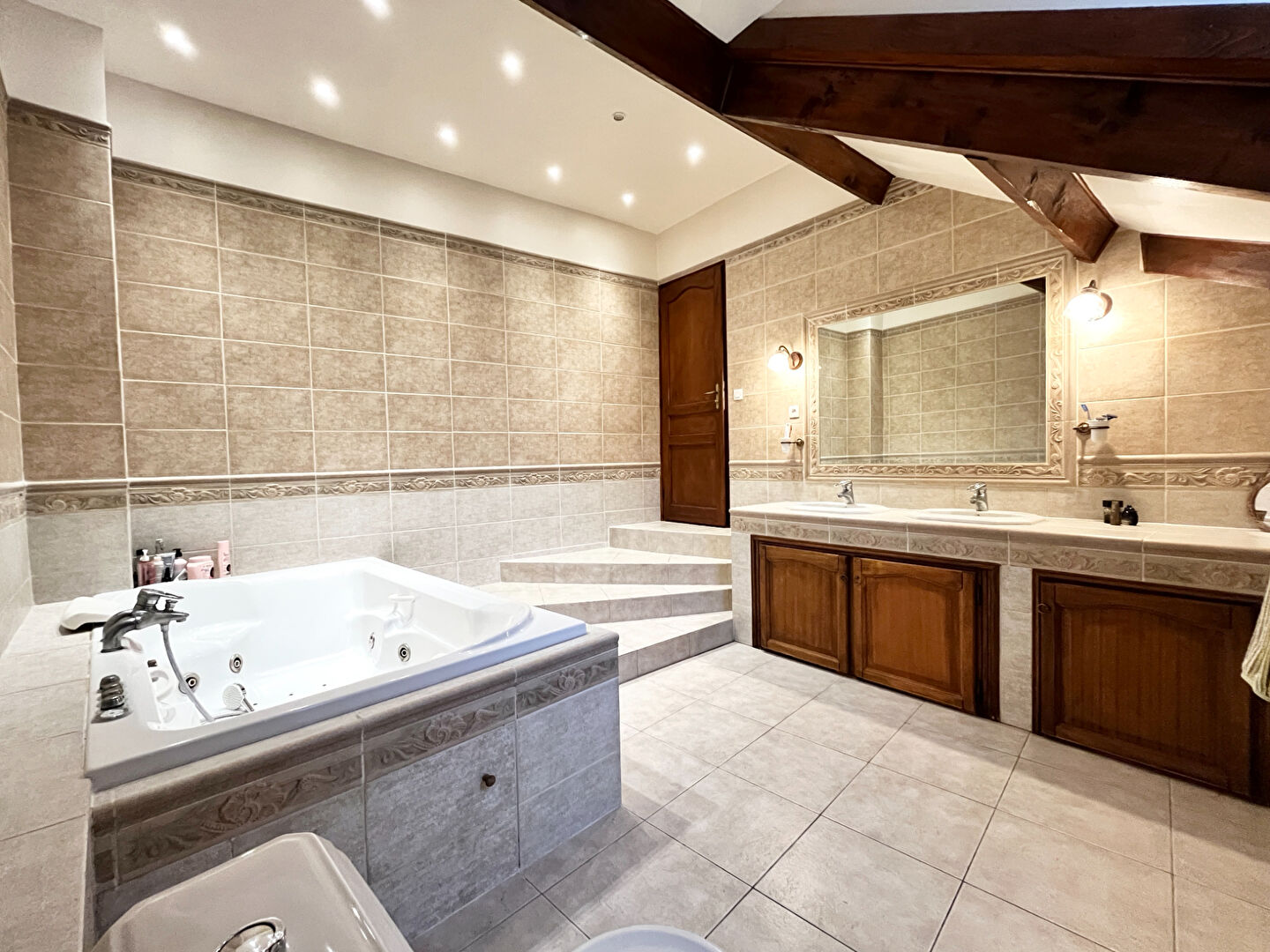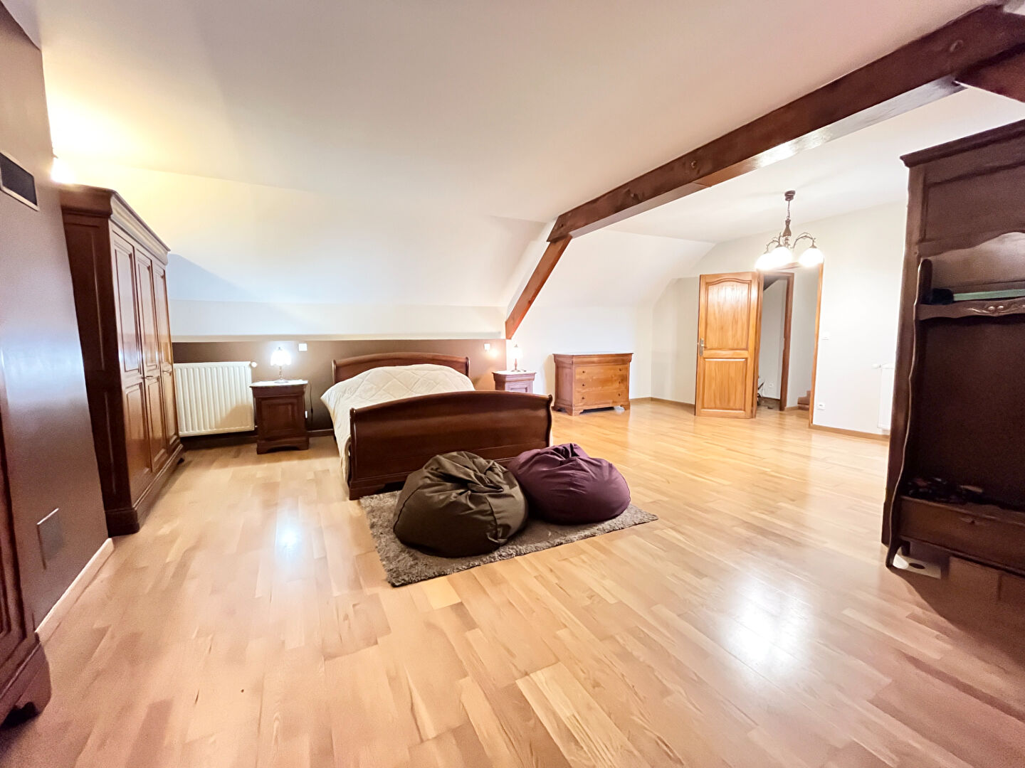À l'étage, un beau palier vous permet d' accéder à 3 chambres spacieuses, une salle d'eau et un WC. Il dessert également une vaste suite parentale de plus de 42m² avec sa salle de bains (baignoire et double vasque) et son propre balcon.