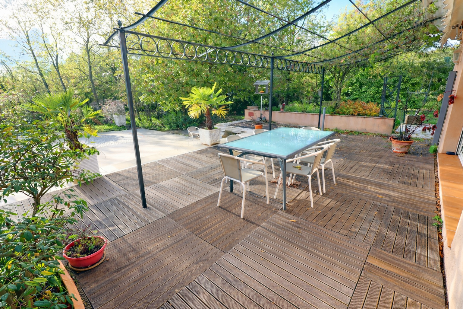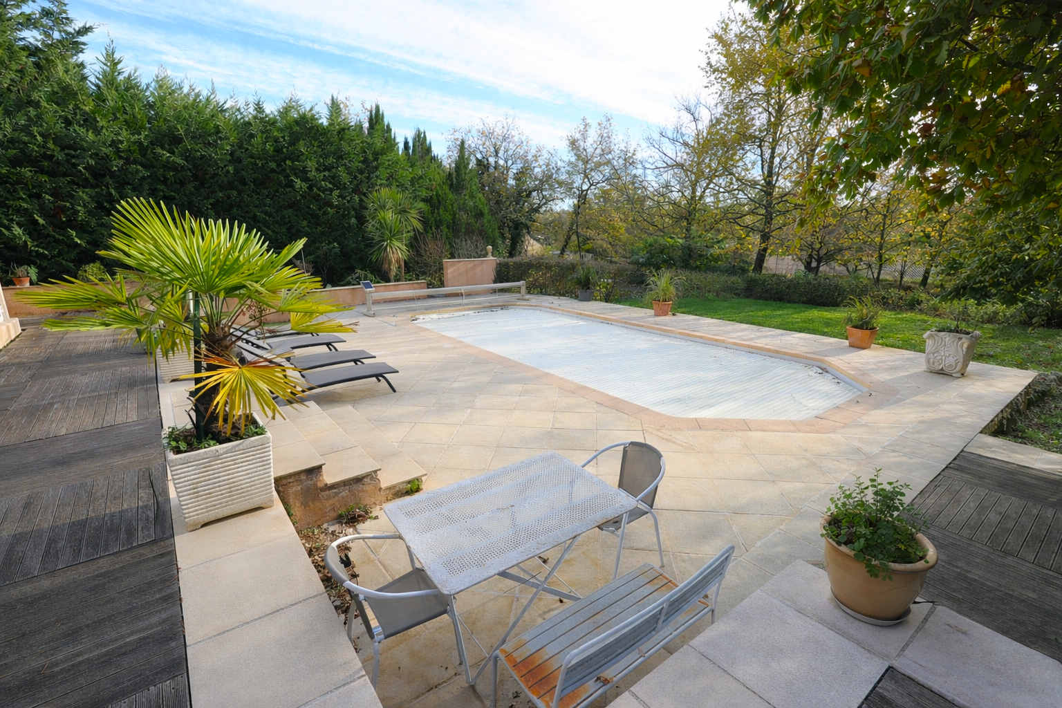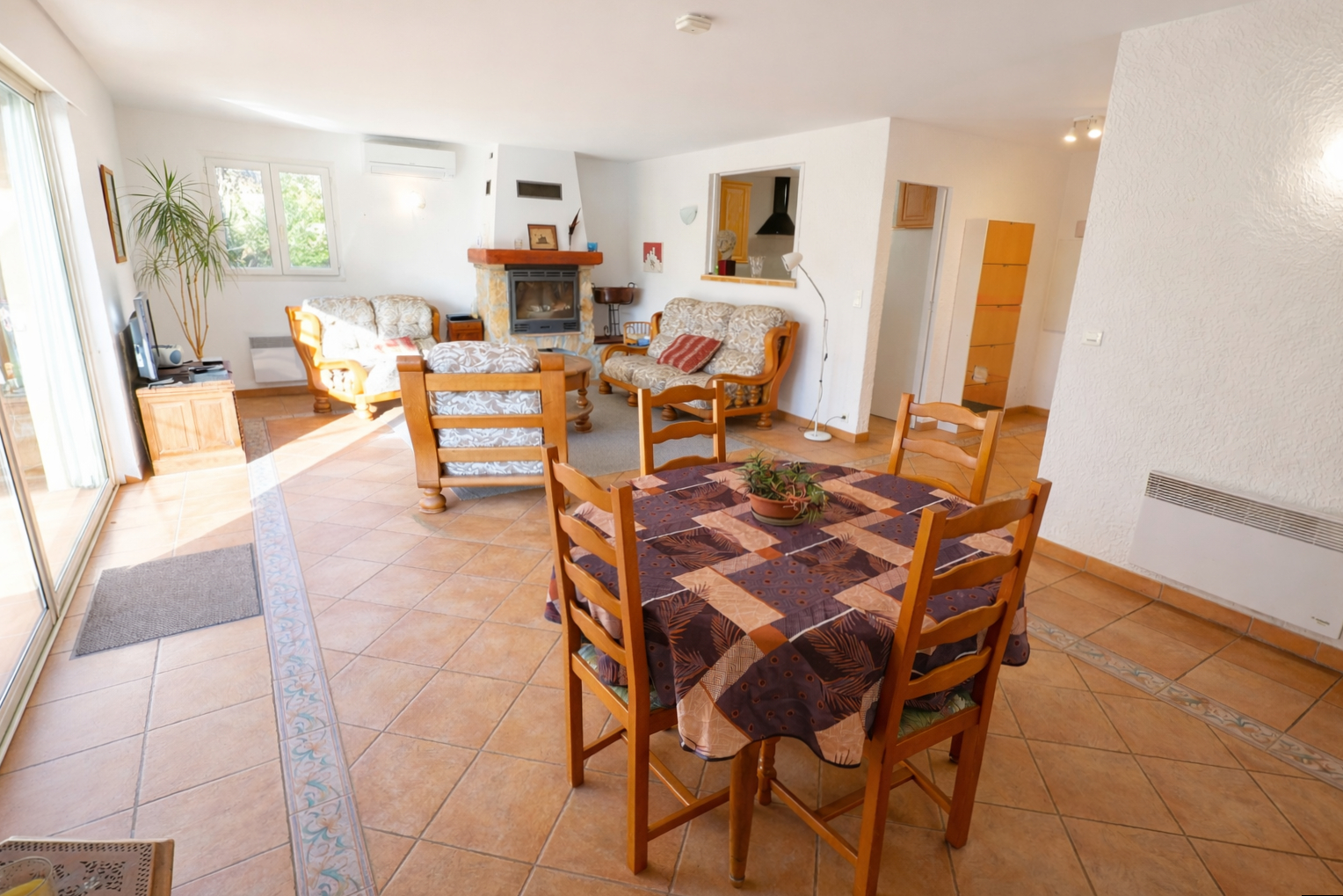 Se compose: d'un vaste séjour lumineux avec sa grande baie en galandage, cheminée insert gainable dans toutes les pièces et climatisation, salon offrant une vue directe sur la terrasse et piscine, cuisine équipée et aménagée, 3 chambres, une salle de bains, un wc .