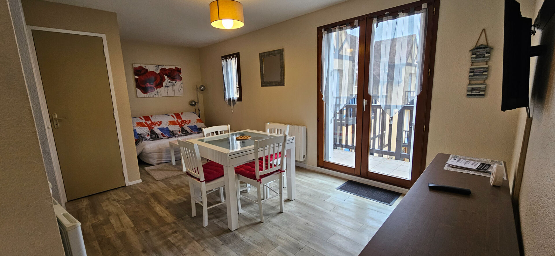 A 100 mètres de la mer appartement au deuxième étage en très bon état avec pièce de vie coin cuisine ,une chambre , salle d'eau, WC et balcon