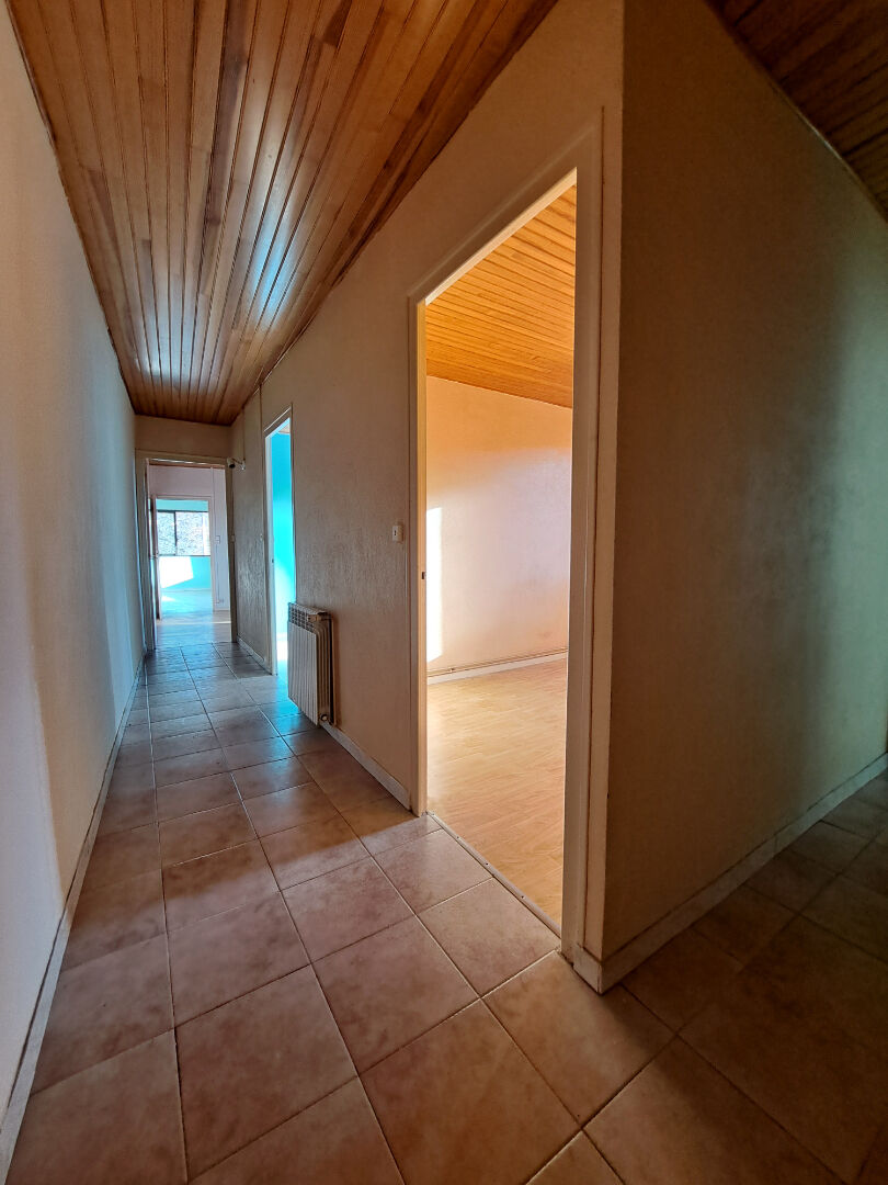 À l'étage, la maison dispose de deux chambres, d'une salle de bains avec WC, d'une pièce en enfilade, ainsi que d'une pièce de vie lumineuse de 28,50 m². Cette dernière, grâce à sa surface, ses ouvertures sur l'extérieur et à sa belle hauteur sous plafond, offre un espace convivial pouvant être repensé selon vos besoins.