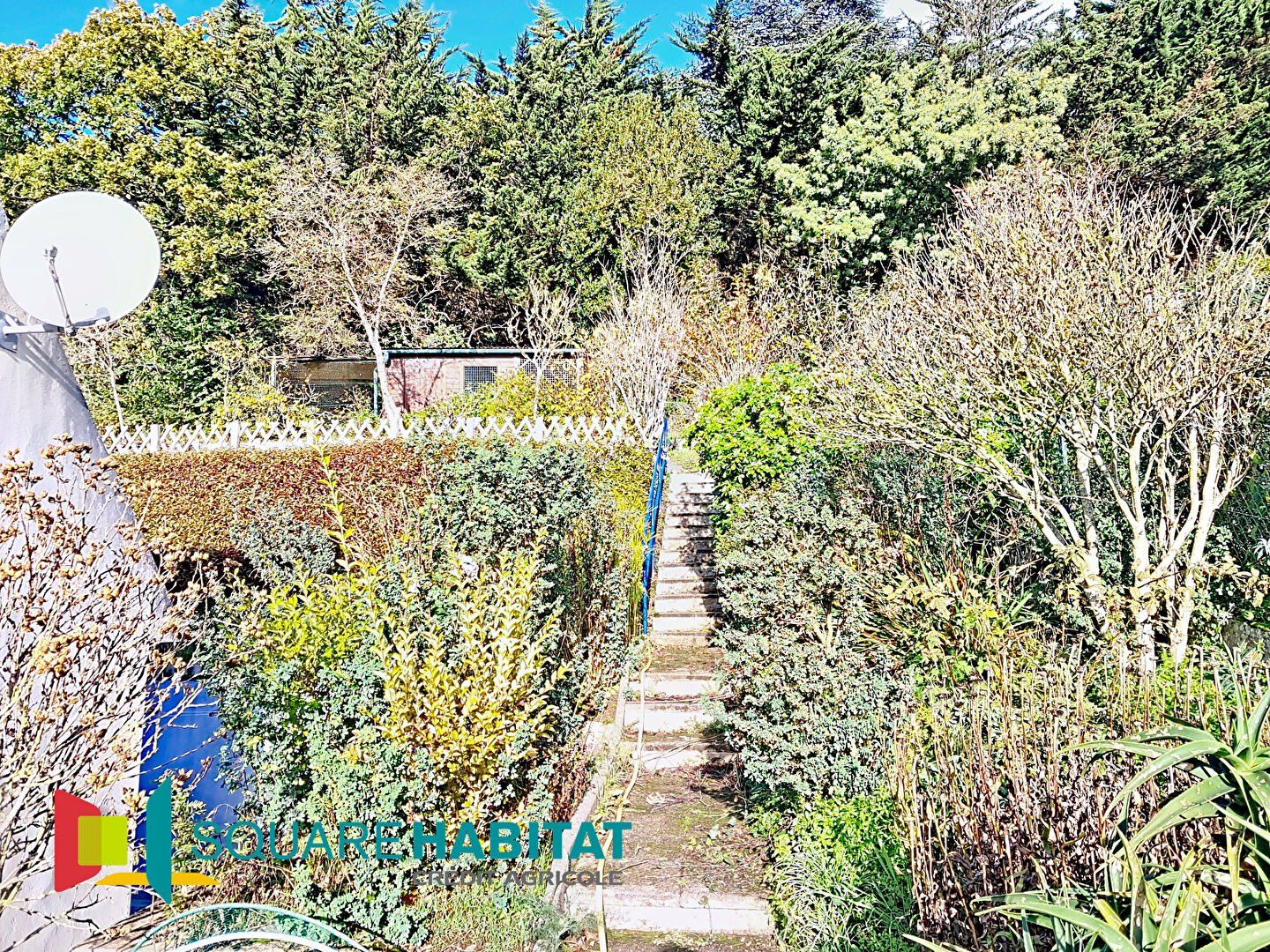 La parcelle en escalier est exposée plein SUD, dispose d'une terrasse et d'un abris.