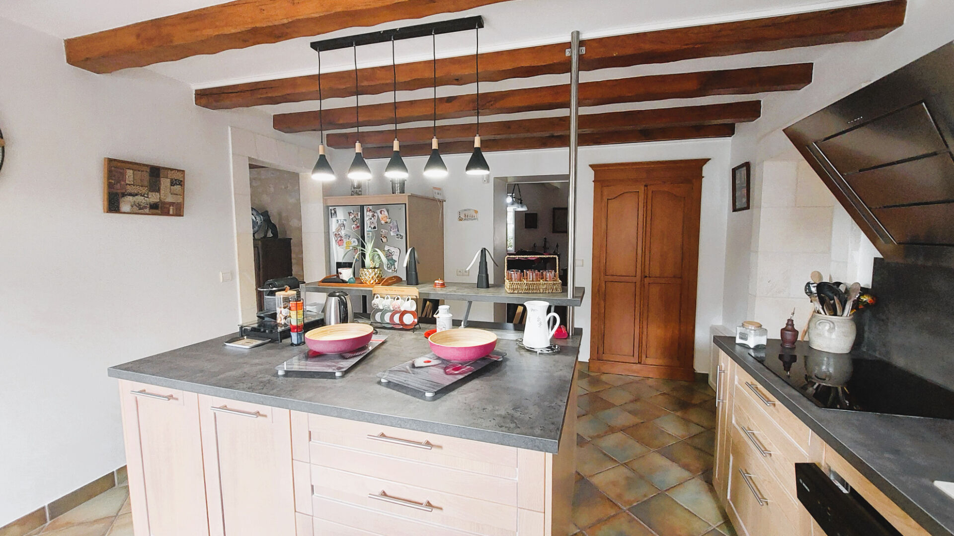 Une cuisine indépendante, entièrement aménagée et équipée, complétée par une arrière-cuisine avec mezzanine.