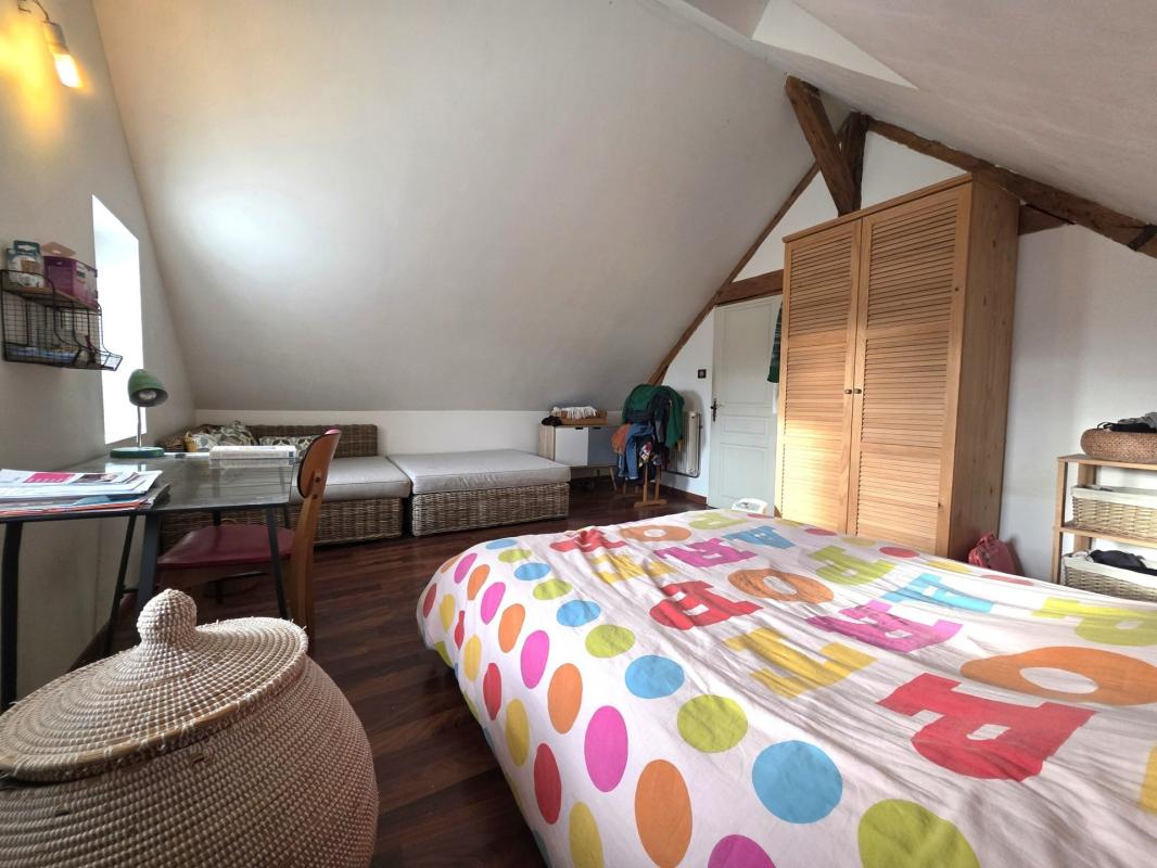 Elle offre un hall d'entrée, un vaste séjour de 31m² avec insert bois, une cuisine séparée, un WC et une salle de bain au rez-de-chaussée. L'étage distribue un palier avec rangements et une chambre de 12m². (Possibilité de créer une seconde chambre en agençant différemment l'étage).