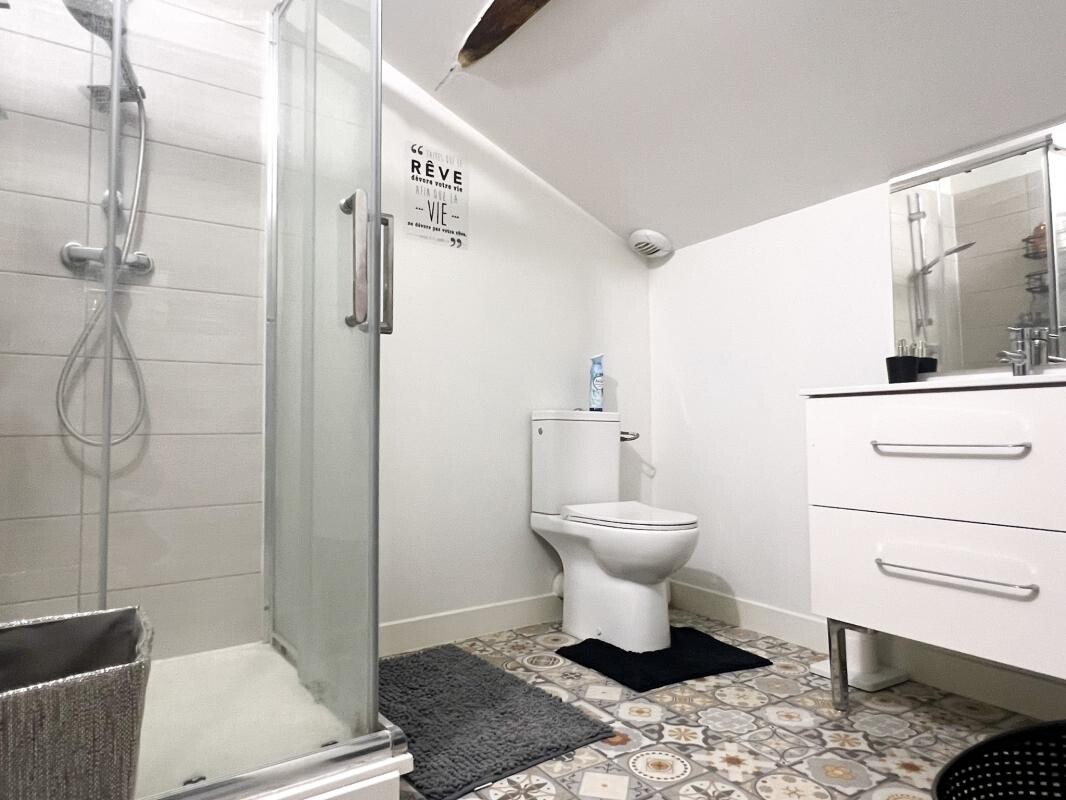 -Au 2e étage : un appartement de type T2 de 50 m2, également loué 600 EUR charges comprises, offrant un salon avec cuisine équipée et aménagée, une chambre, une salle d'eau et un WC.