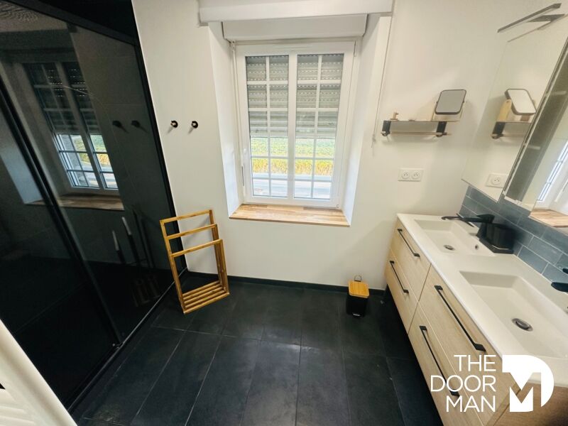 Remise au goût du jour, elle offre tout le confort nécessaire avec un séjour chaleureux équipé d'un poêle à granulés, une cuisine ouverte et entièrement équipée, ainsi qu'une belle véranda lumineuse avec vue sur le jardin. À l'étage, vous trouverez une suite parentale avec salle de bain, une chambre supplémentaire, une mezzanine idéale pour un bureau ou un coin détente, et une salle d'eau moderne. Un grenier vient compléter les espaces de cette maison pleine de charme.