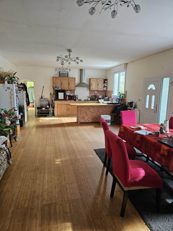 Une maison de 132m2 DPE: C GES: A. Elle se compose d'un séjour/salon avec cuisine ouverte, Salle d'eau avec WC, 4 chambres dont une parentale avec salle d'eau et WC(à terminer), buanderie, chaufferie, réserve...