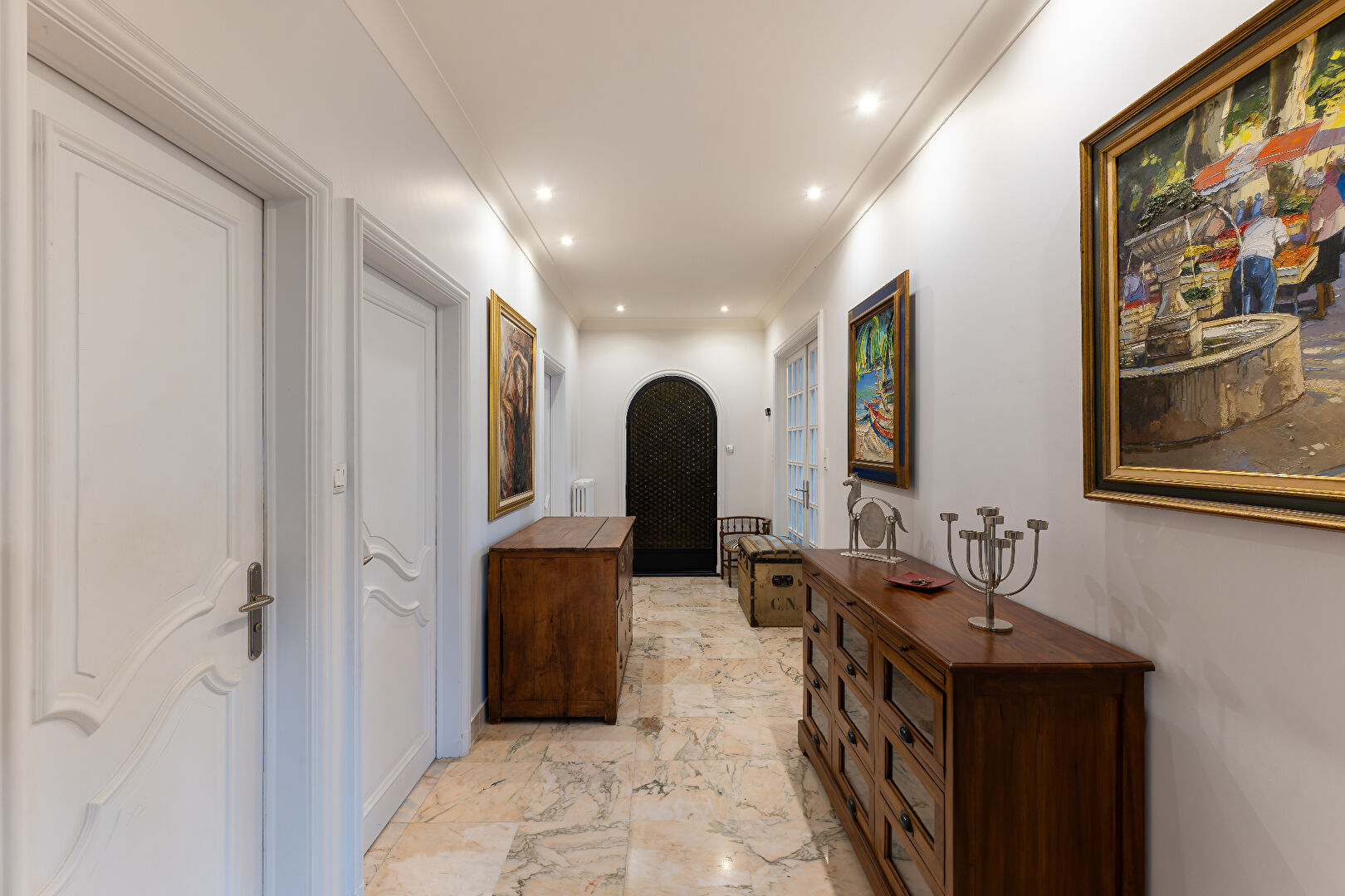 A l'intérieur, vous trouverez des matériaux nobles (marbre, véritable parquet ...), un espace de vie lumineux, 4 vastes chambres au calme, 2 salle de bains .... tout pour profiter au mieux des volumes de cette maison qui est en retrait des axes donc très au calme.