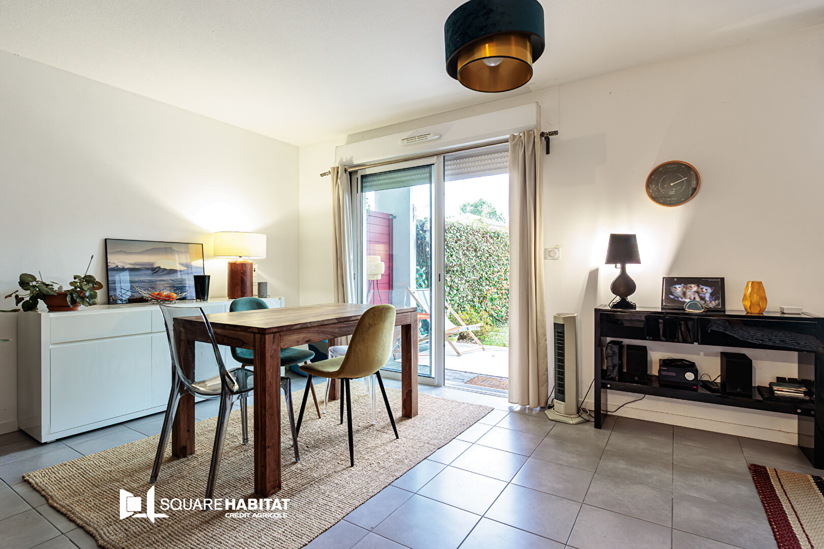 L'appartement offre un agencement optimal : entrée avec placard, espace cuisine-salle à manger, coin salon/chambre, une terrasse couverte et son jardin.