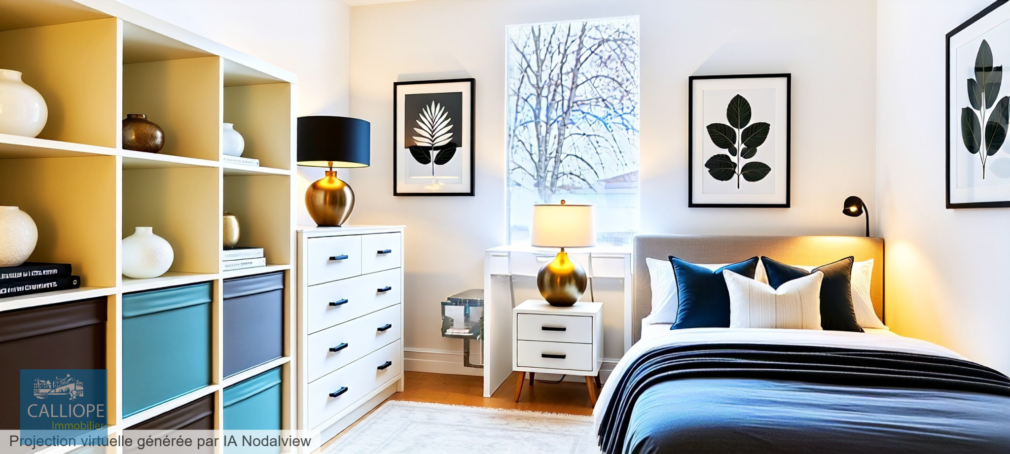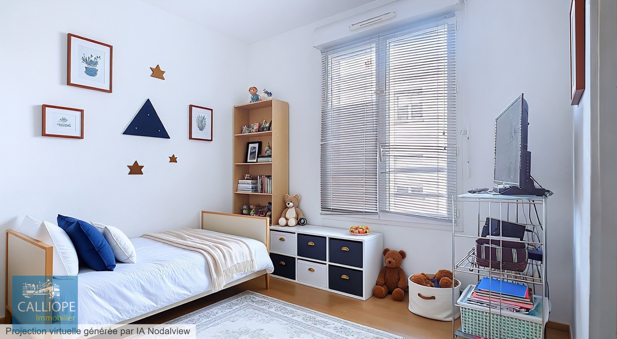 1 entrée avec placard, 1 séjour avec coin cuisine aménagé, 2 chambres de 9.91 m2 et 9.40 m2 avec placards en plus, 1 bureau de 7.84 m2, 1 salle de bains de 3.57 m2, 1 wc. 1 balcon avec vue sur parc de 7 m2.