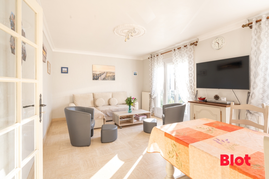 Un salon/séjour lumineux, une cuisine indépendante, 2 chambres, une salle d'eau et des WC séparés.