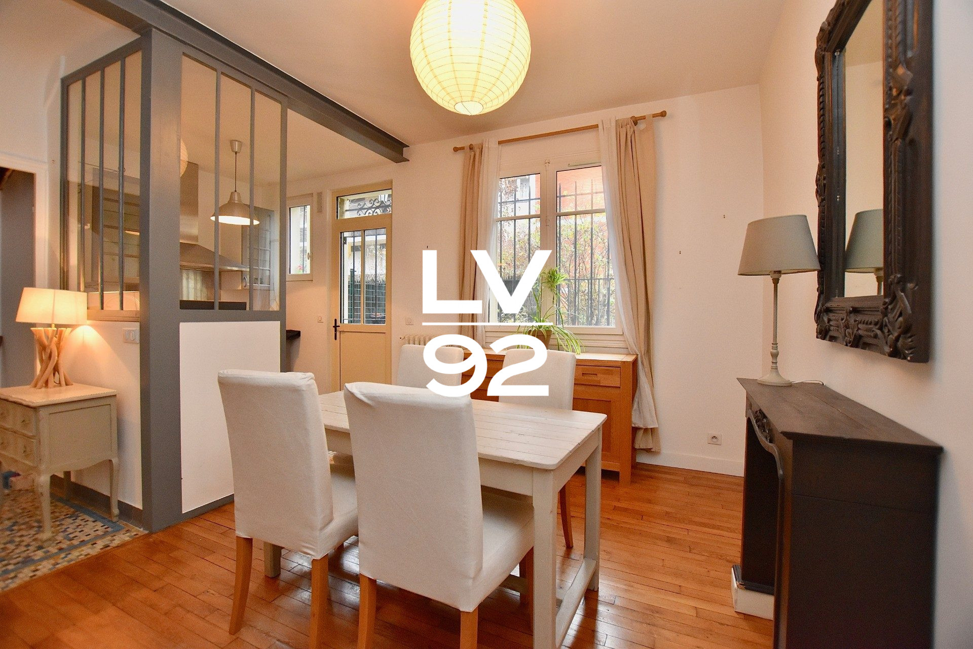 Il y a comme un petit air londonien dans cette impasse cachée en plein coeur d'Asnières, à proximité de la Mairie : le charme opère avec les immeubles en briques et les quelques maisons aux tous petits jardins en façade... Et c'est au détour d'une petite impasse très calme que vous découvrirez cette charmante maison. Située en retrait du trottoir, on y accède par une petite cour en mosaïques surplombée d'un perron.