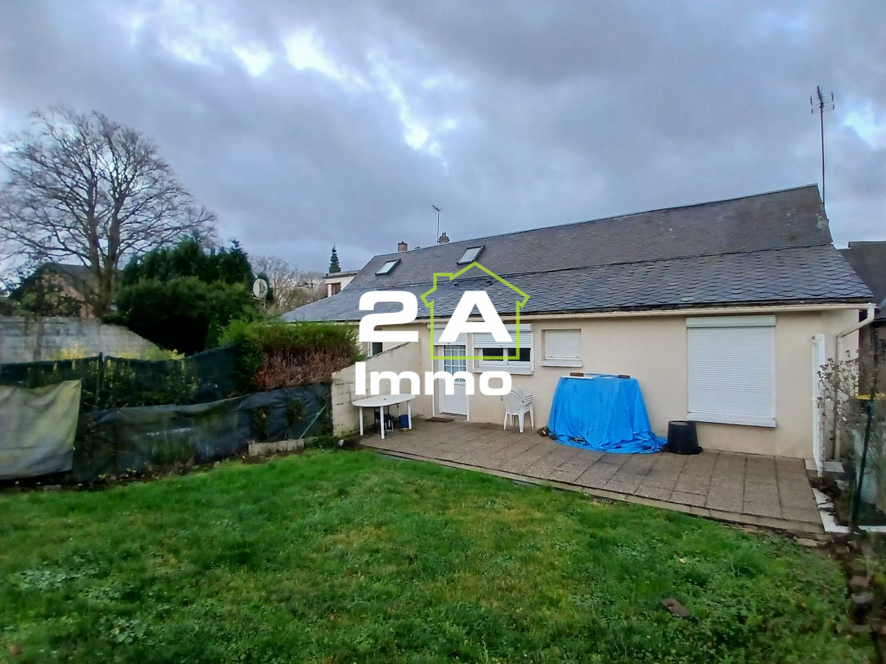 Cette maison est divisée en trois parties, une première maison de 61m2 avec une vie de plain pied. Au rez-de-chaussée, un séjour, une cuisine aménagée et équipée, une chambre, une salle d'eau et wc séparé, puis à l'étage une deuxième chambre ainsi qu'un jardin. Pour un loyer de 600?.