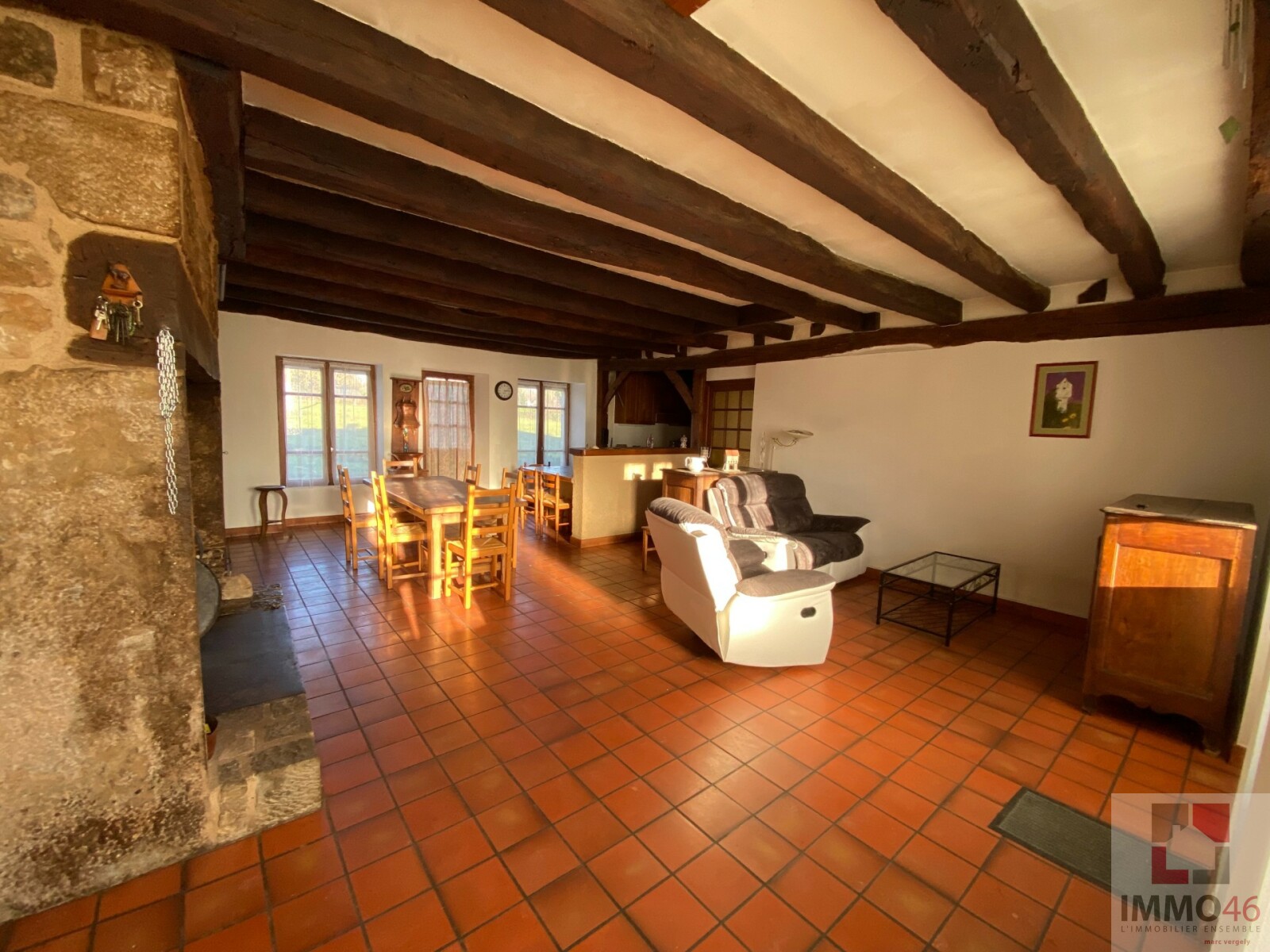L'agence IMMO46 vous propose à la vente cette maison 3 chambres, idéalement située à cinq minutes de Gramat, sur un terrain plat de 3486 m².