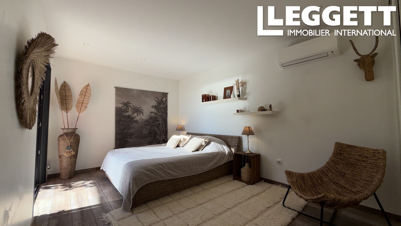 Prestations : Air conditionné, panneaux photovoltaïques, abri de voiture, ascenseur, double vitrage, volets roulants électriques, fibre optique, portail électrique, piscine, éclairage extérieur, terrain de boules.