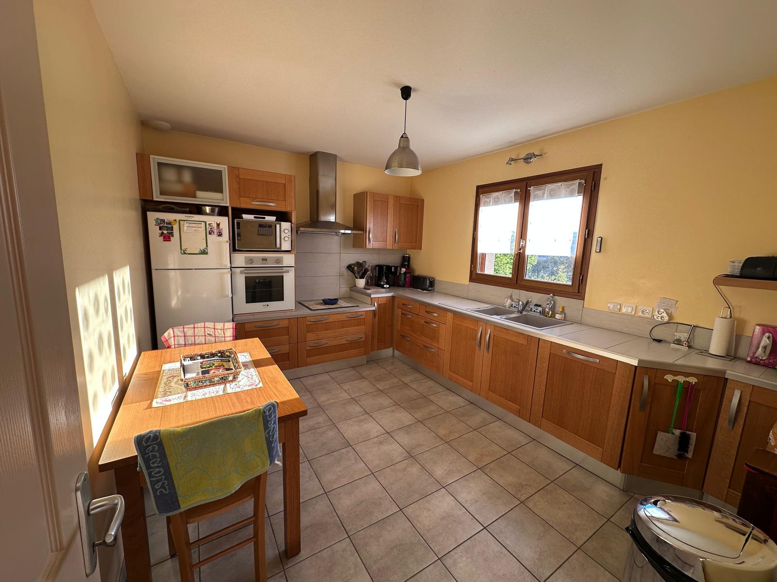 Découvrez cette agréable maison de type 4 de 120m2 offrant un cadre de vie confortable et fonctionnel. En rez-de-chaussée, vous trouverez une cuisine, un séjour/salon avec insert, deux chambres, une salle d'eau et un WC indépendant. Les combles sont aménagés et disposent d'une chambre et d'une salle d'eau/WC. Un grand sous-sol de 95m2 vient compléter l'ensemble.Construction de 2010.Terrain de 1246m2, grande terrasse aménagée et abords soignés.