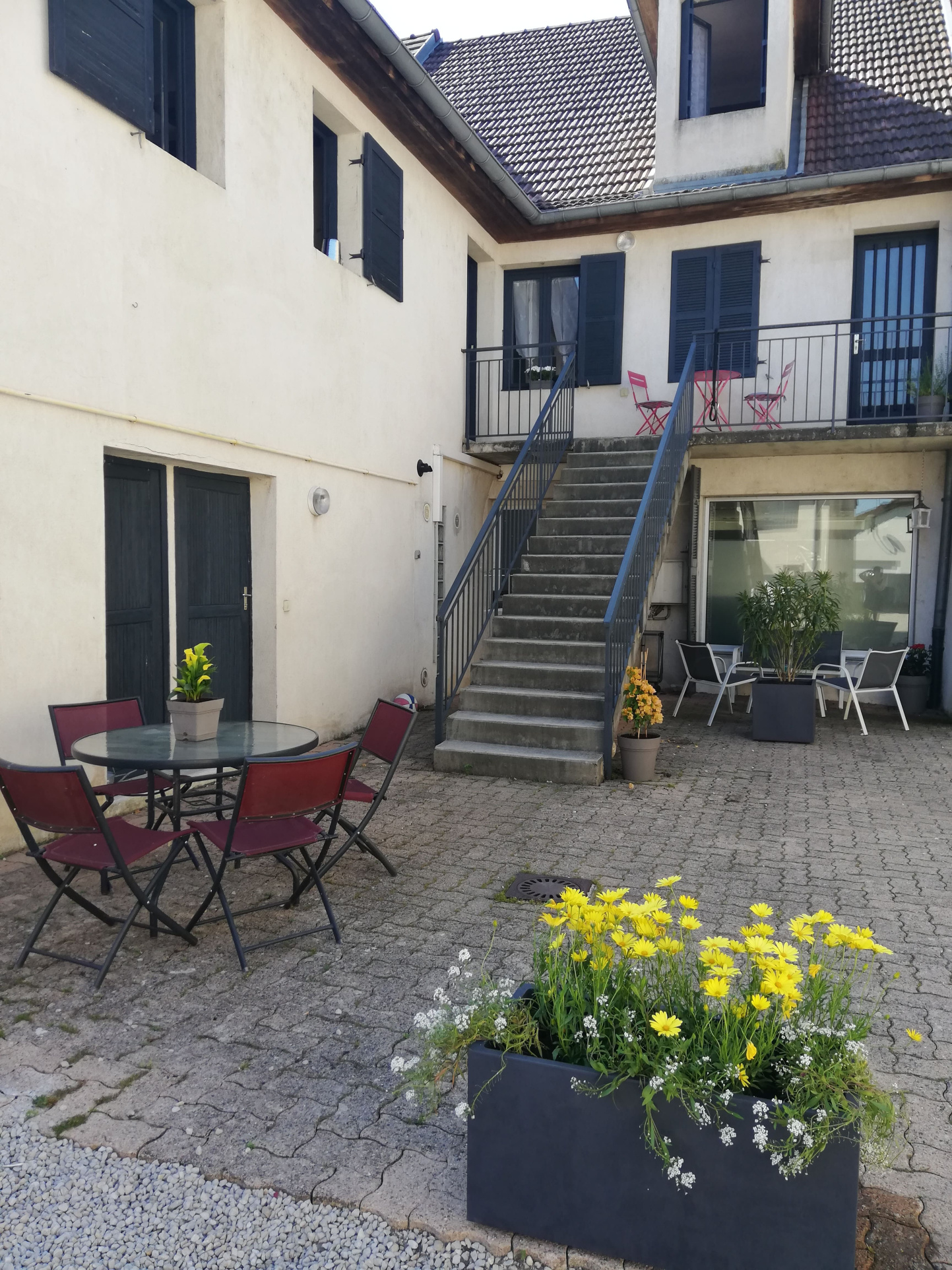 Découvrez ce bel appartement en duplex de 109m2, idéalement situé au coeur de Bletterans, à deux pas des commerces, avec l'accès principal par une grande cour privée et fermée !