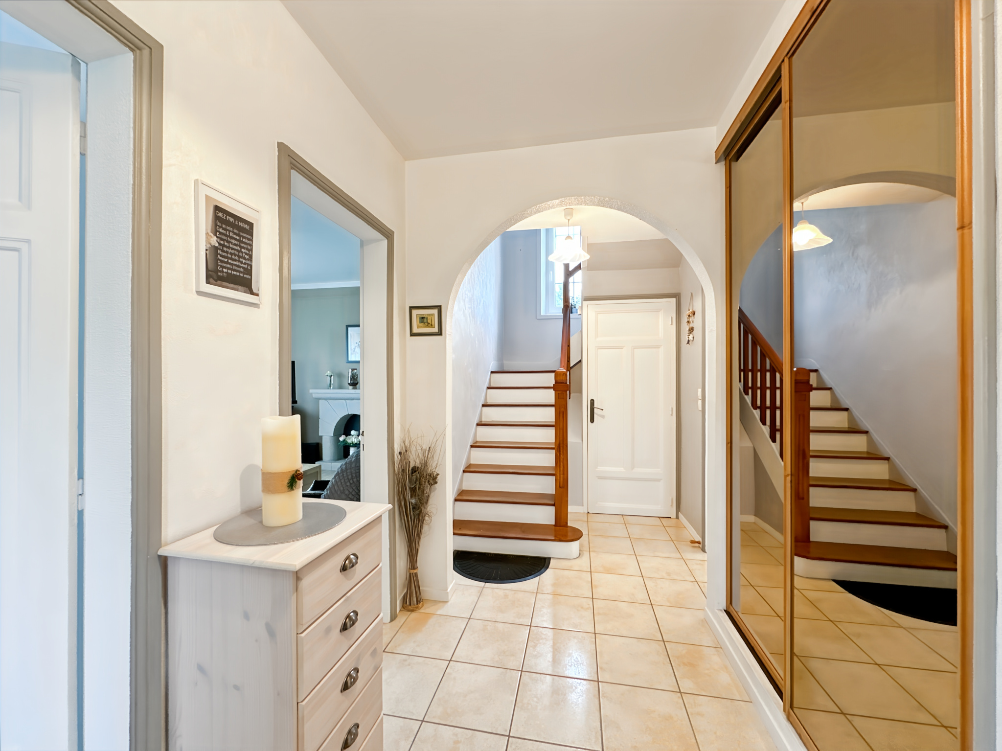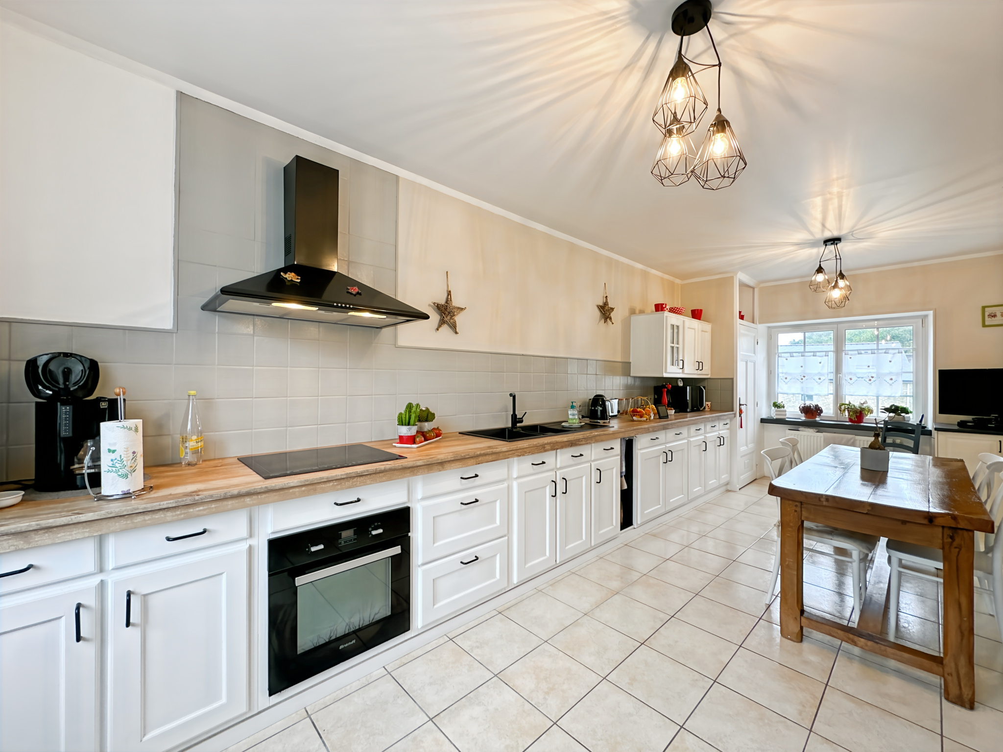 Au rez-de-chaussée : vaste entrée avec placard, grande cuisine familiale aménagée & équipée donnant sur la terrasse et le jardin, salon-séjour lumineux, WC séparés.