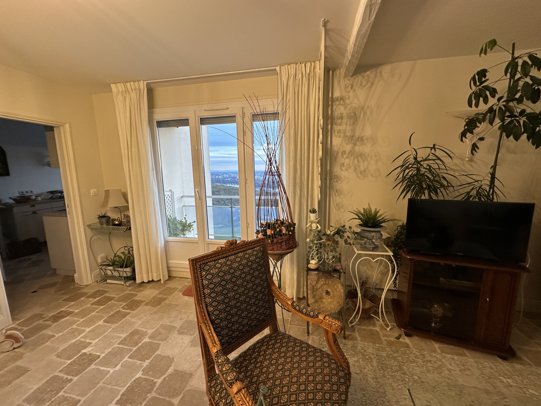Appartement quatre pièces en parfait état, très lumineux, dans copropriété entretenue et sécurisée, avec terrasse vue sur lac, comprenant entrée, vaste salon séjour 28 m2, cuisine équipée Schmidt, salle d'eau avec douche, dégagement, deux chambres, nombreux rangements, Ascenseur. Cave, Garage fermé en sous-sol. Charges annuelles 2800 EUR (chauffage-eau chaude inclus). DPE : D. Mandat no 3461. 'les informations sur les risques auxquels ce bien est exposé sont disponibles sur le site géorisques : géorisques.gouv.fr'. 176 000 EUR
