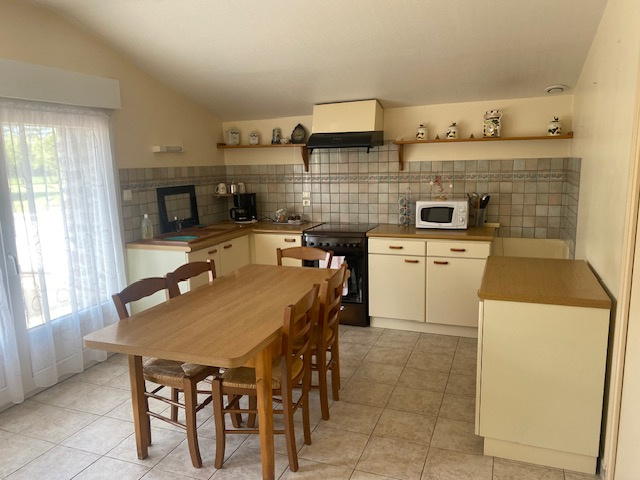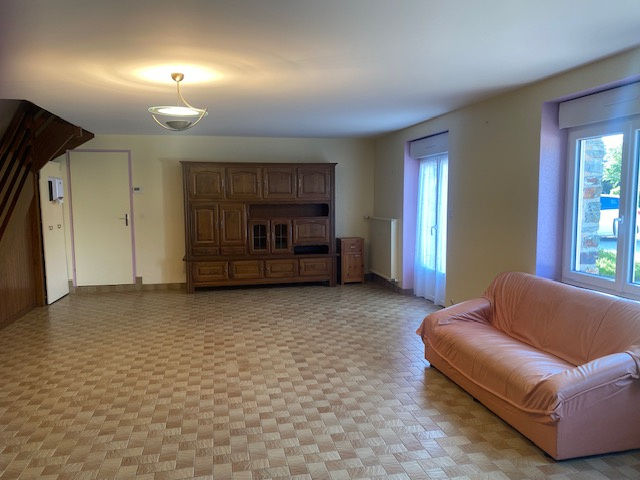 Maison à vendre à ROHAN (56), rénovée en 1996, composée : au rez-de-chaussée : entrée/cuisine aménagée/coin repas (15,53 m2), dégagement/chaufferie (3,54 m2), wc avec lave-mains (1,39 m2), salle d'eau avec douche, placard et lavabo (4,31 m2), séjour/salon (48,50 m2), rangement sous escalier ; à l'étage : couloir (4,46 m2), trois chambres mansardées avec placard (8 m2, 8 m2 et 5 m2), salle d'eau mansardée avec douche/wc et lavabo (2,50 m2) ; Cour enrobée devant. Terrain attenant l'ensemble sur 389 m2.