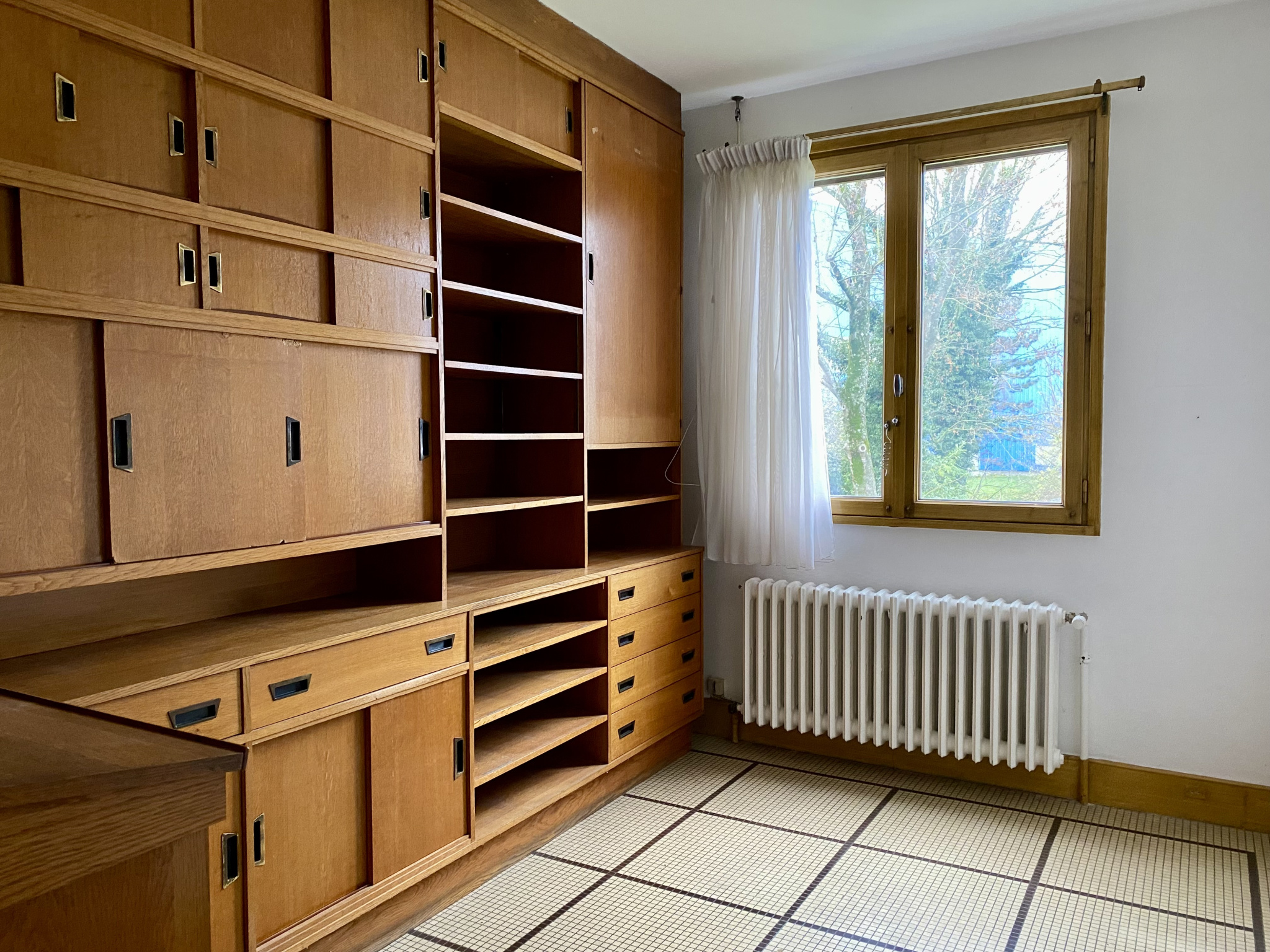 Grande cave/atelier - Jardin à l'avant de la maison avec appentis pour stationnement d'un véhicule et accès au garage double - Jardin à l'arrière de la maison clos et arboré - Architecture contemporaine - Travaux à prévoir - Proche de la gare centre ville et grands axes.