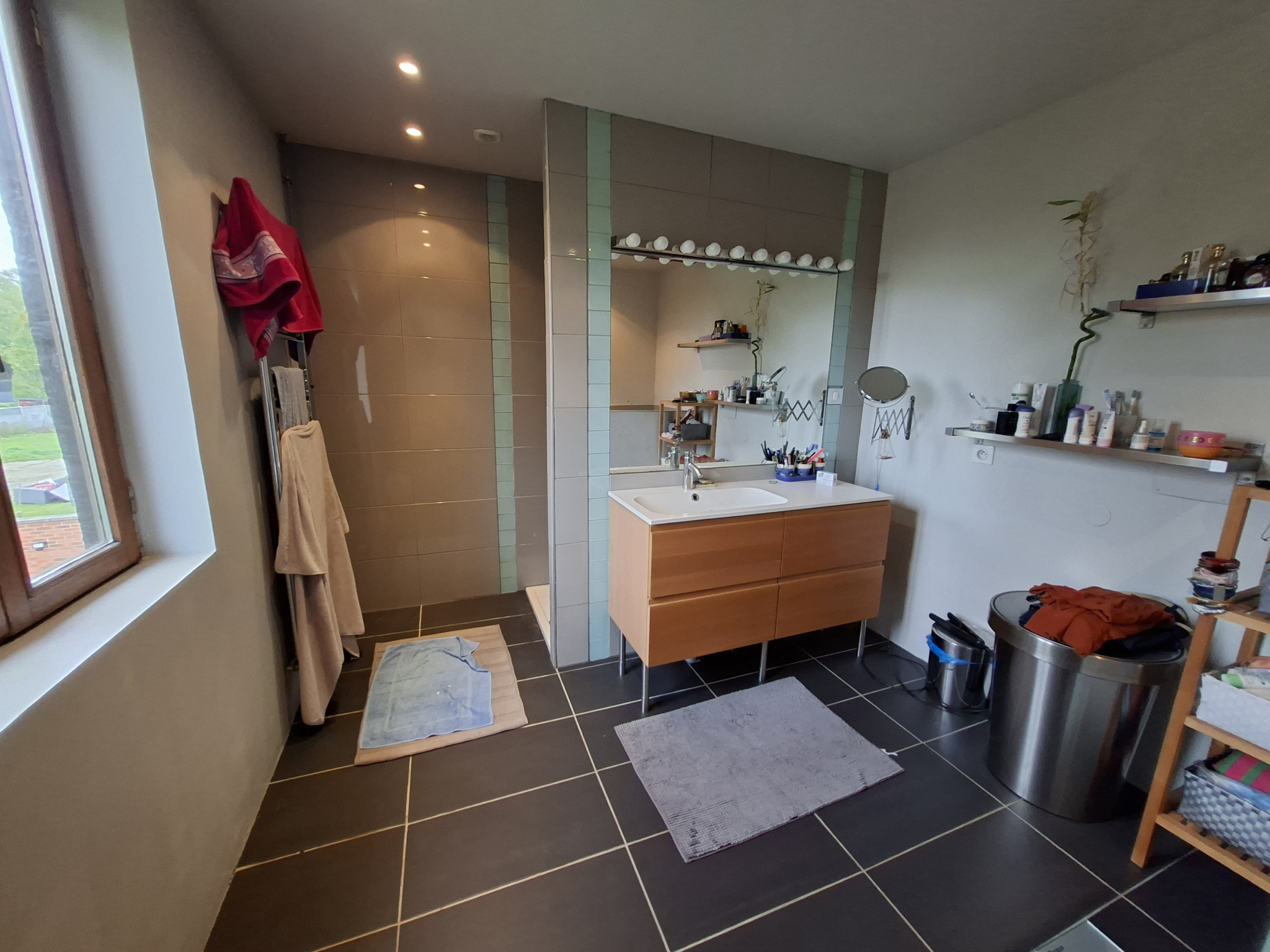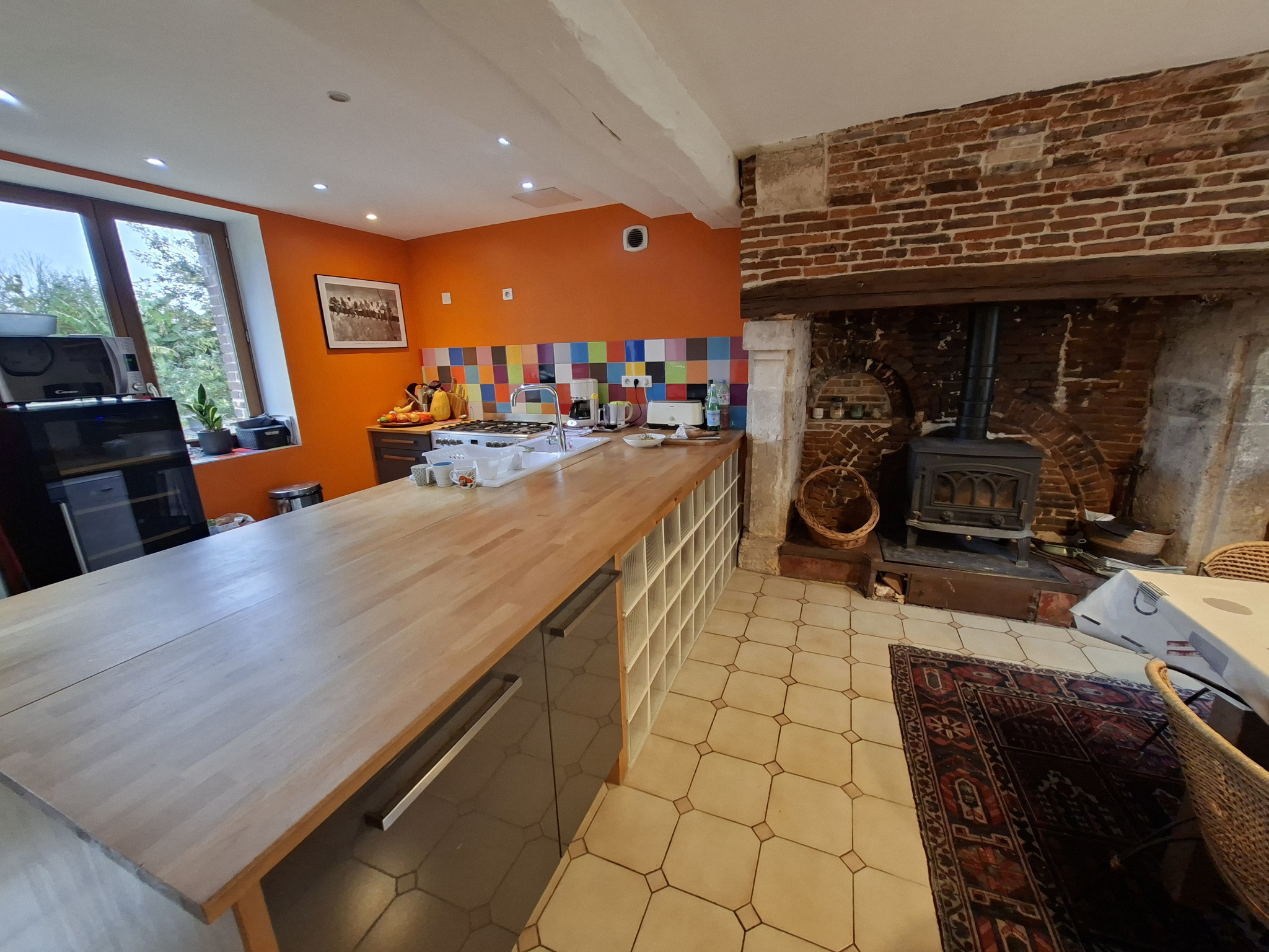 L'entrée dessert un vaste salon lumineux et une grande cuisine/salle à manger avec une cheminée cauchoise agrémentée d'un poêle à bois, créant une atmosphère conviviale. Le rez-de-chaussée comprend également un bureau ou chambre, un grand cellier, un WC indépendant, ainsi qu'un accès à la belle cave en pierre. À l'étage, vous trouverez quatre belles chambres baignées de lumière, une salle d'eau rénovée avec WC, ainsi qu'une future salle de bain à terminer, offrant un joli potentiel d'aménagement. Le grenier est également disponible pour rangements ou projet d'aménagement.