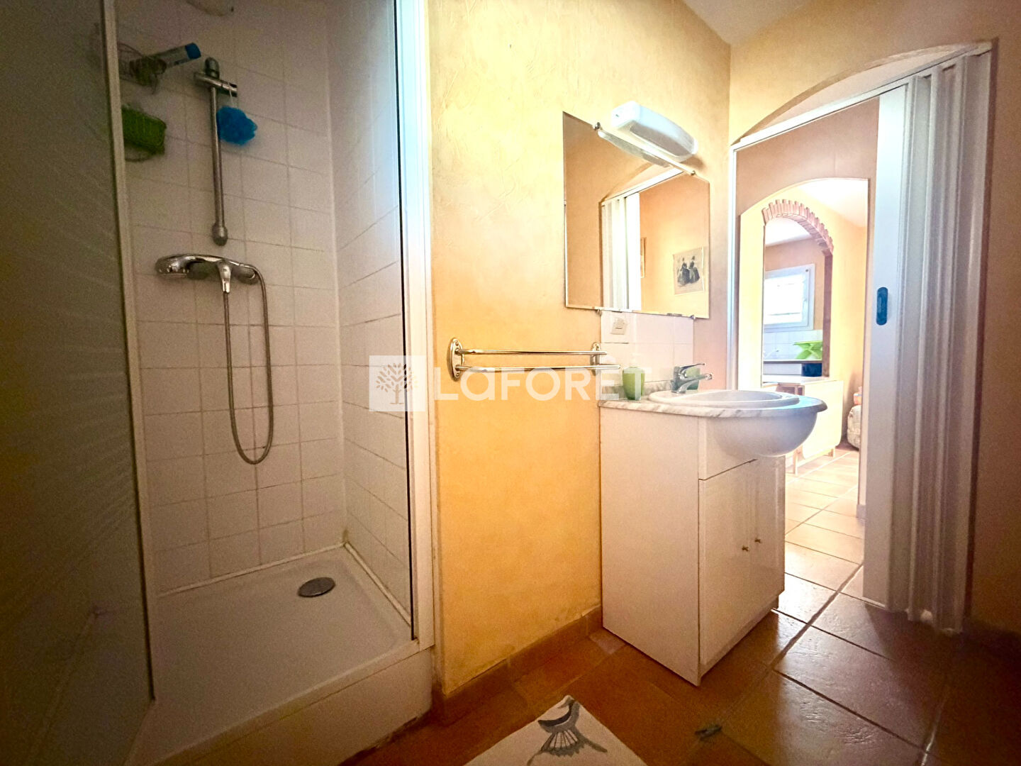 A l'étage, vous disposerez de deux autres chambres dont une avec balcon-terrasse couvert avec vue sur les Albères et une grande salle d'eau avec douche, baignoire et WC.