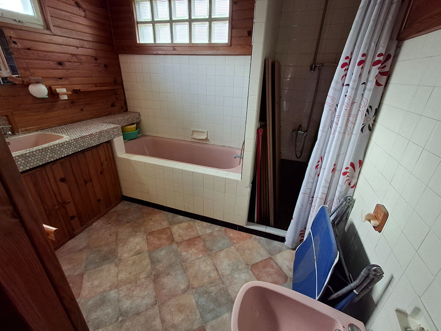 En demi sous-sol : 3 pièces, cuisine, SDE avec WC.
