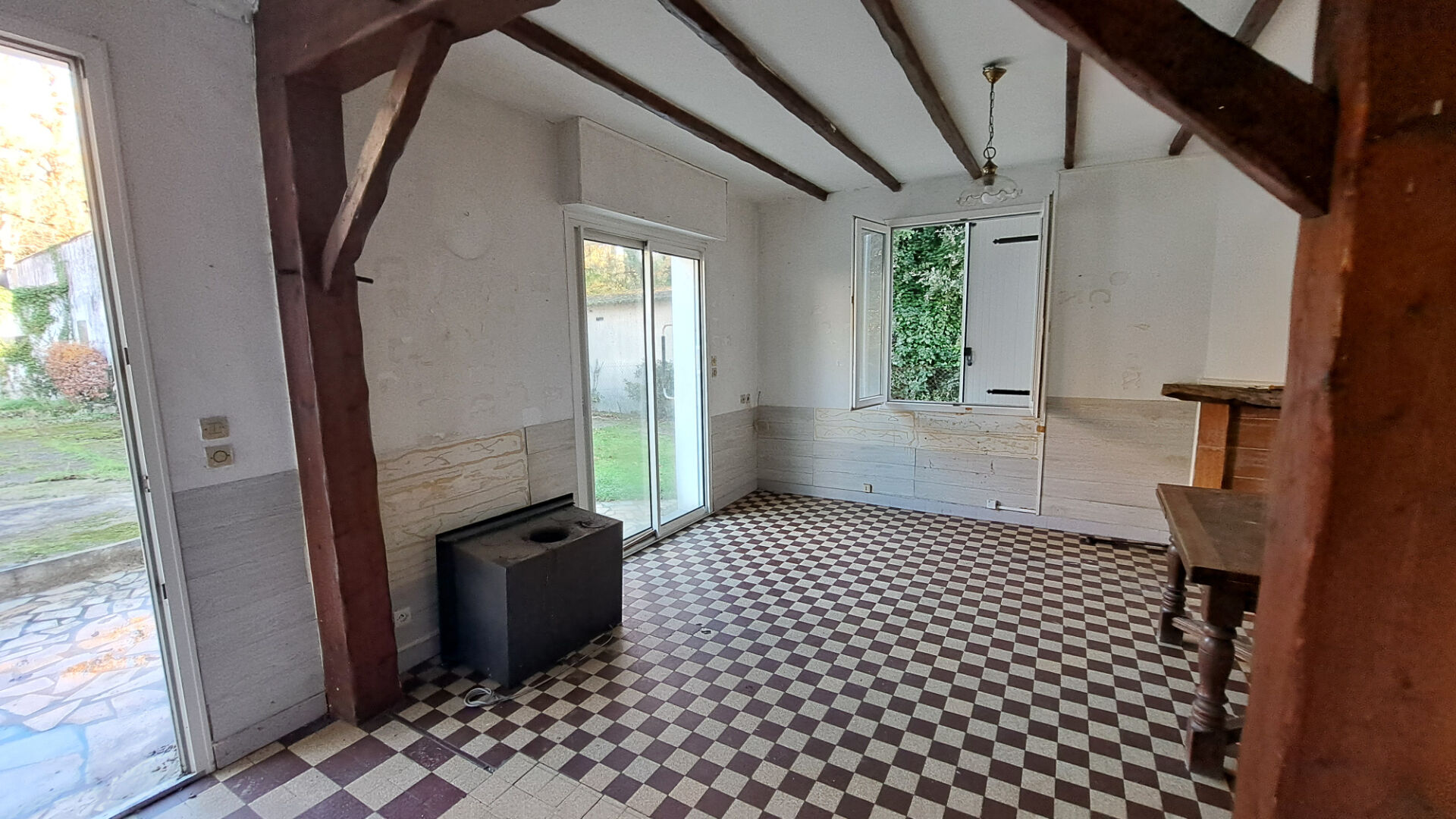 Elle comprend en rez de chaussée une pièce de vie avec avec un insert, une cuisine et un wc indépendant.
