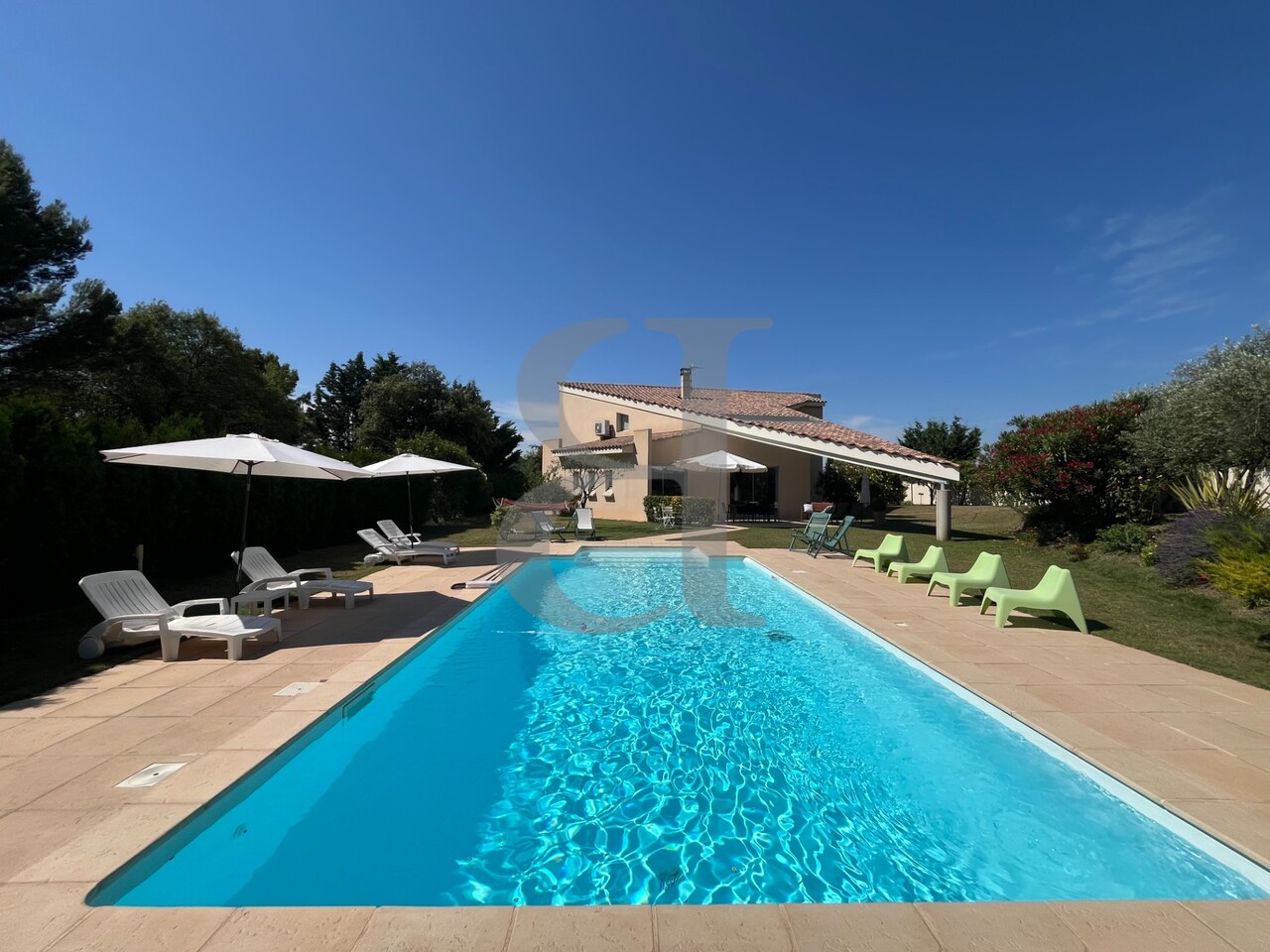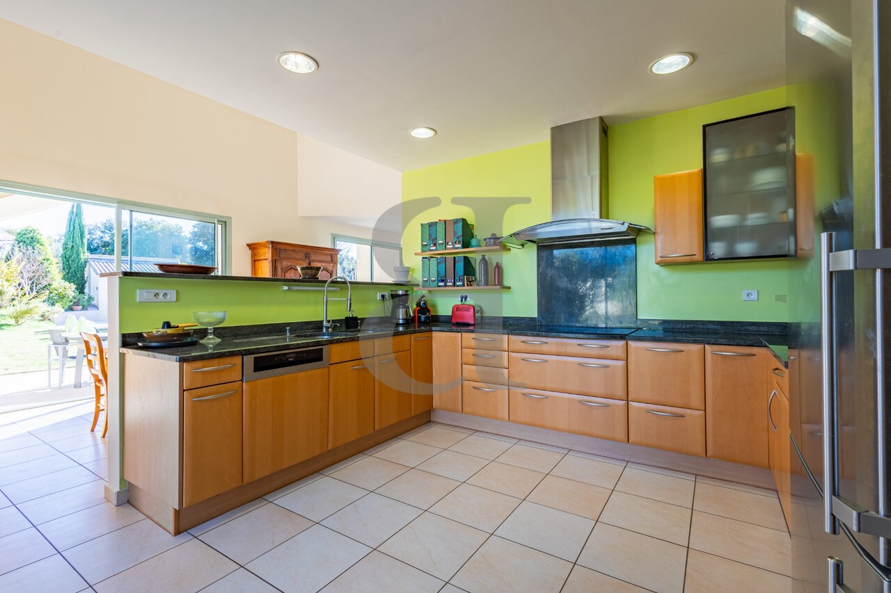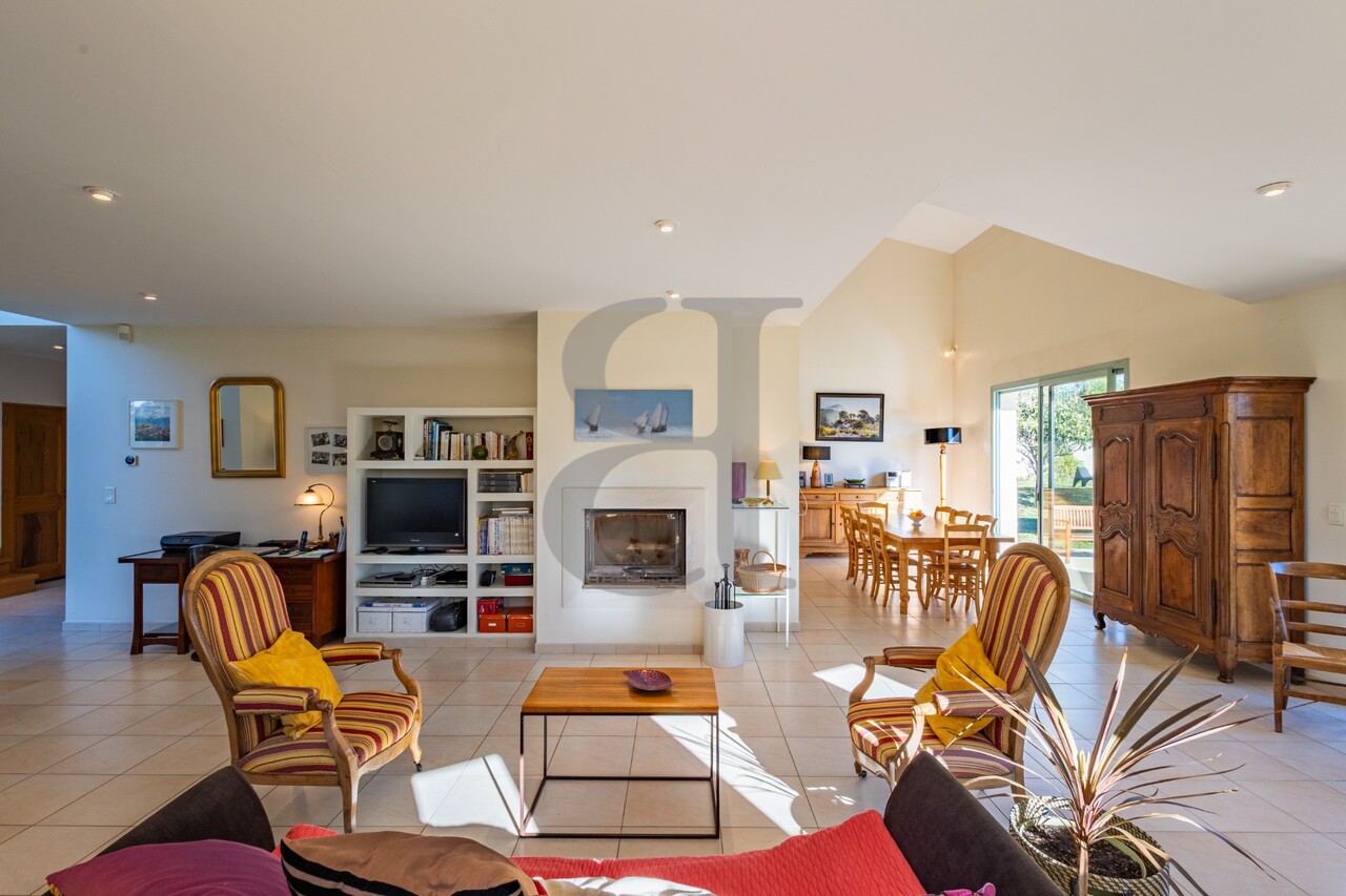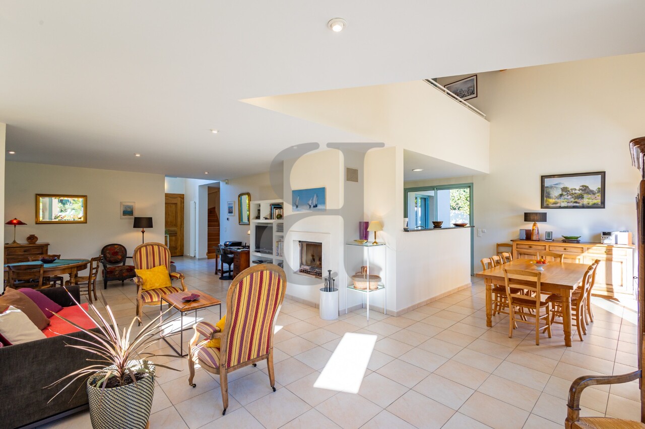 Sur les hauteurs d'un charmant village prisé. Venez découvrir cette villa contemporaine de 240m² environ baignée de lumières, avec une spacieuse pièce salon salle à manger avec cheminée. Offrant des espaces atypiques avec un imposant hall d'entrée. Vous profiterez d'une chambre avec salle de bains en rez de chaussée. Et de trois belles chambres avec un vaste salon en étage. Les formes et l'espace de cette villa sera vous séduire. Confort optimal avec son chauffage par le sol sur pompe à chaleur. L'extérieur invite à la détente avec un jardin bien arboré et paysagé de 3000m² environ avec piscine de 10x5m au sel. Toutes les prestations sont de qualité ! La réalisation unique avec un air de villa californienne en Provence ! A découvrir sans plus tarder car cette villa est en exclusivité !