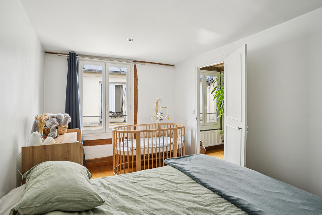 Dans le prolongement, la chambre de bonne dimension donne elle aussi sur la cour au calme.