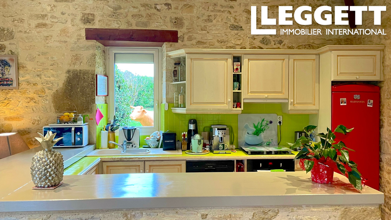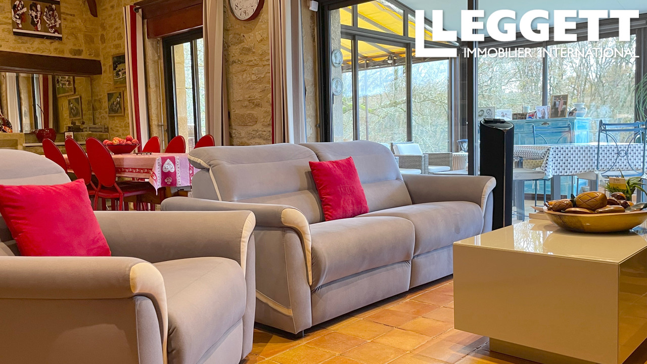 A41538FEV46 - Charmante moderne maison (140 m2) en pierre de style de Quercy, située à quelques pas du village artistique de Les Arques, au calme absolu en pleine nature. Terrain de 31 345 m² avec piscine plein sud, terrasses, garage, box et stationnements.