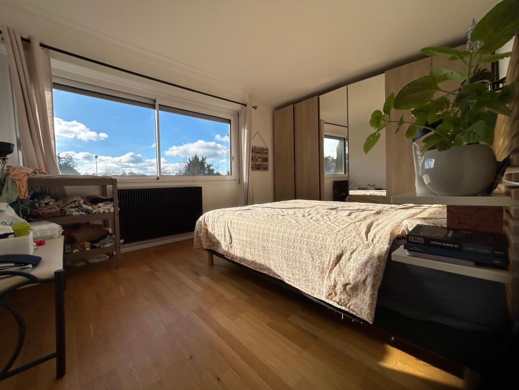 Dans copropriété intimiste, proche de tout (commerces, écoles, transports), appartement T 4 vendu loué de 89 m², doté de 3 chambres, séjour climatisé avec cuisine ouverte donnant accès à balcon exposé Ouest.