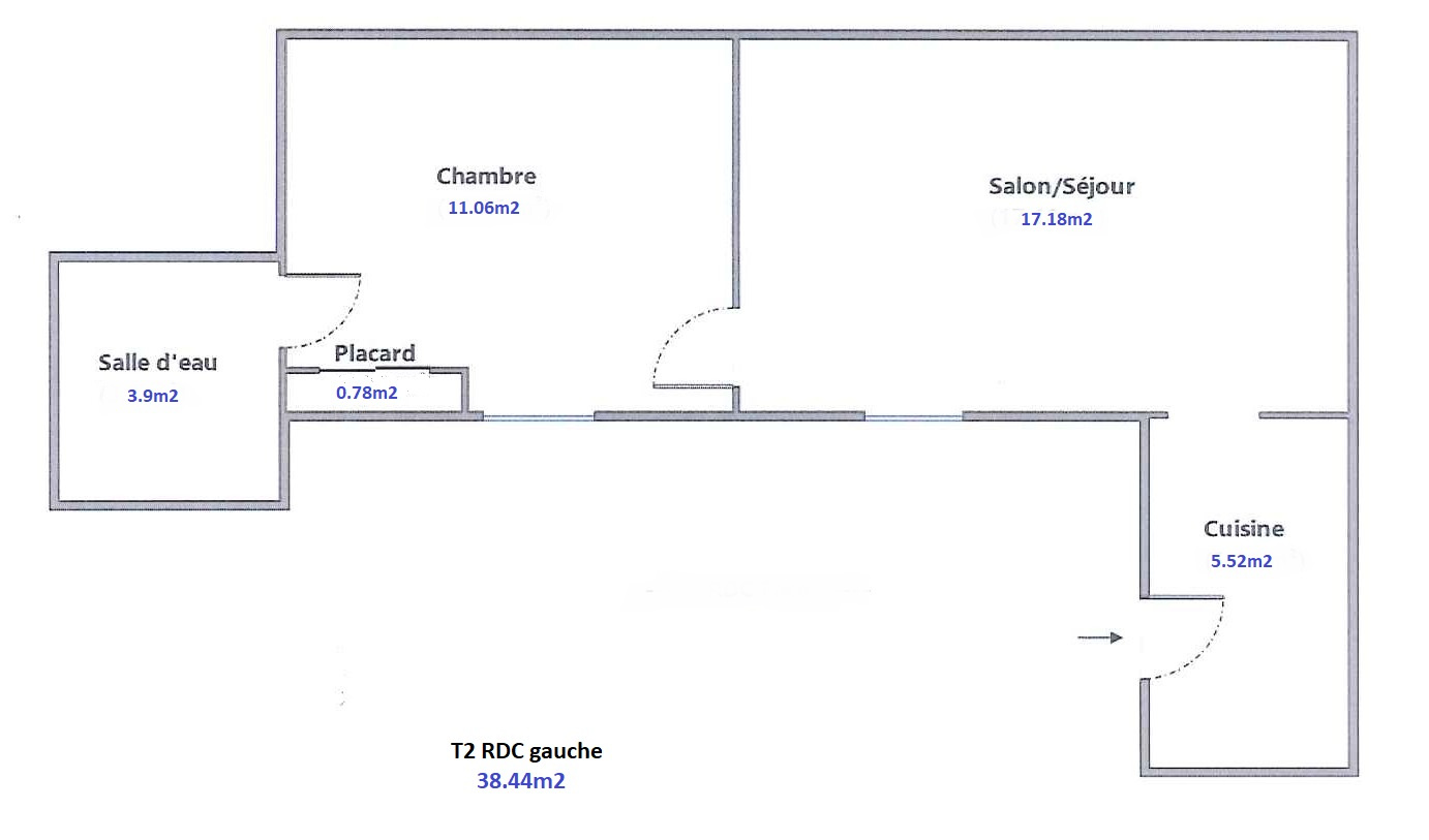 - 1 Appartement Type 2, surface 38.44m2 + cave en sous-sol - Loué 518.52 EUR