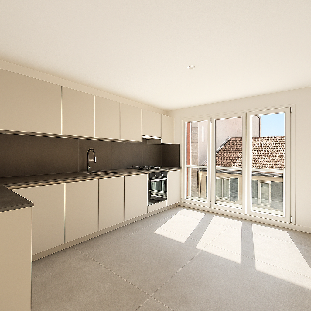 Le niveau principal accueille une vaste pièce de vie prolongée par un balcon, parfaite pour des séjours agréables, ainsi qu'une cuisine indépendante, fonctionnelle et adaptée à un usage ponctuel comme régulier.