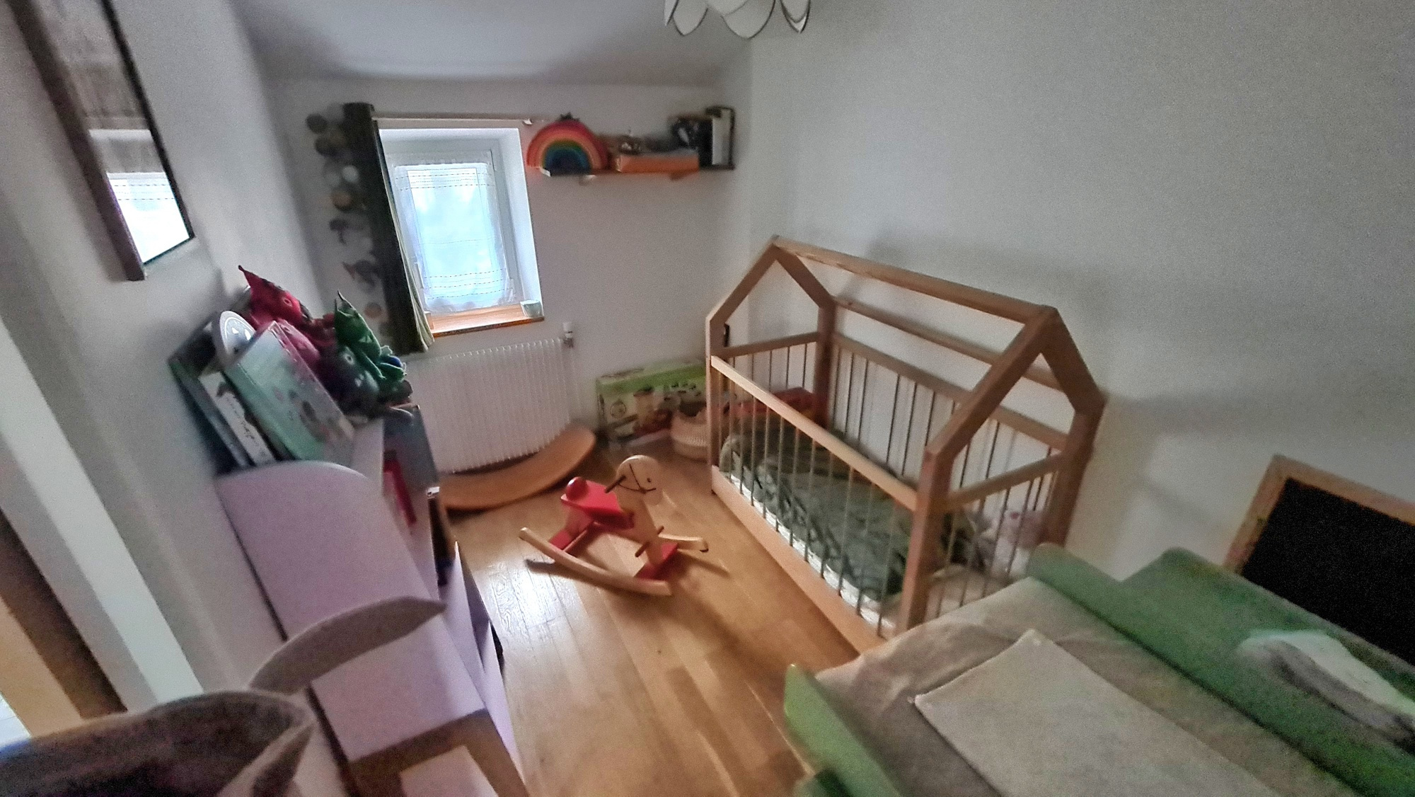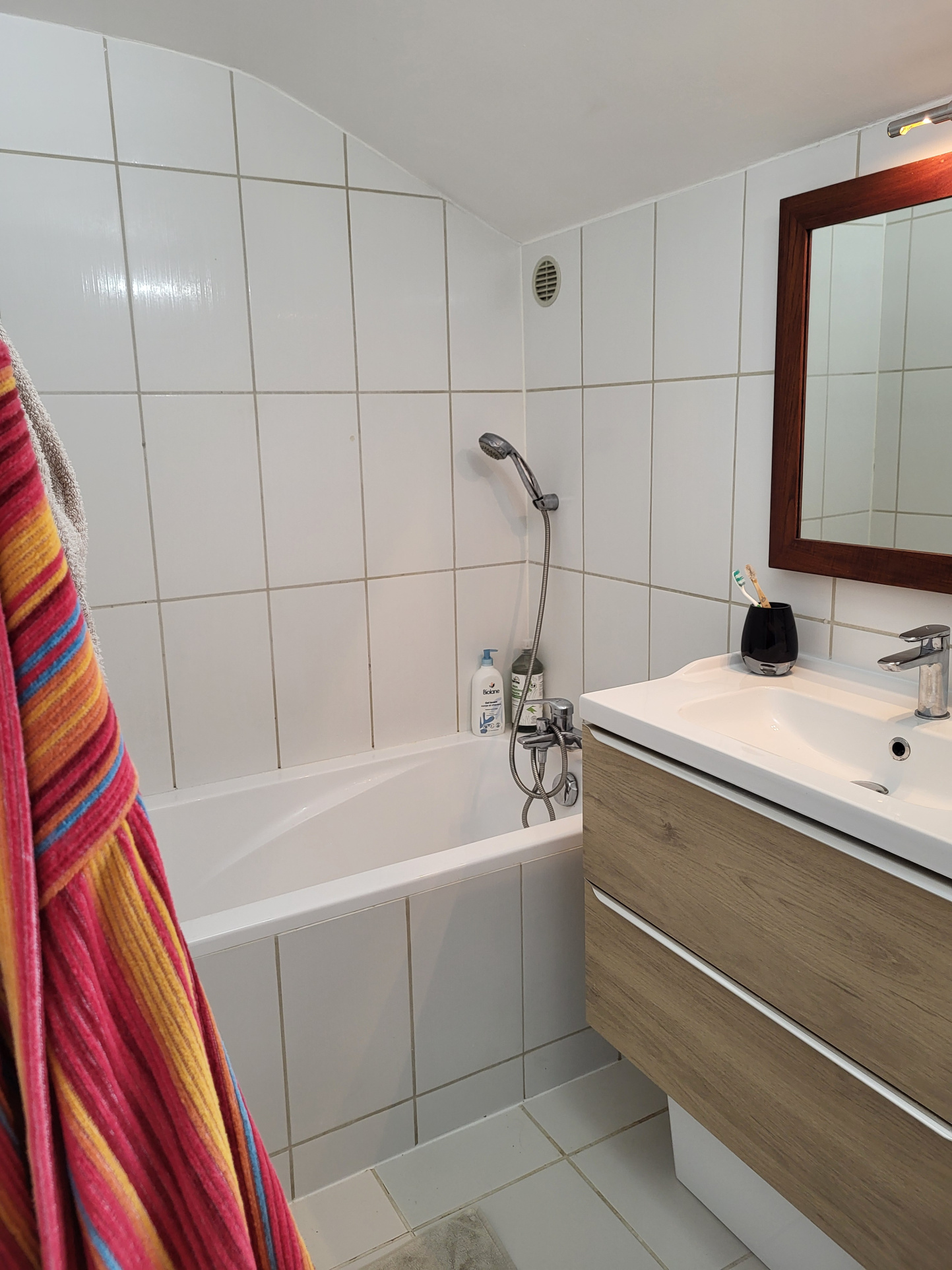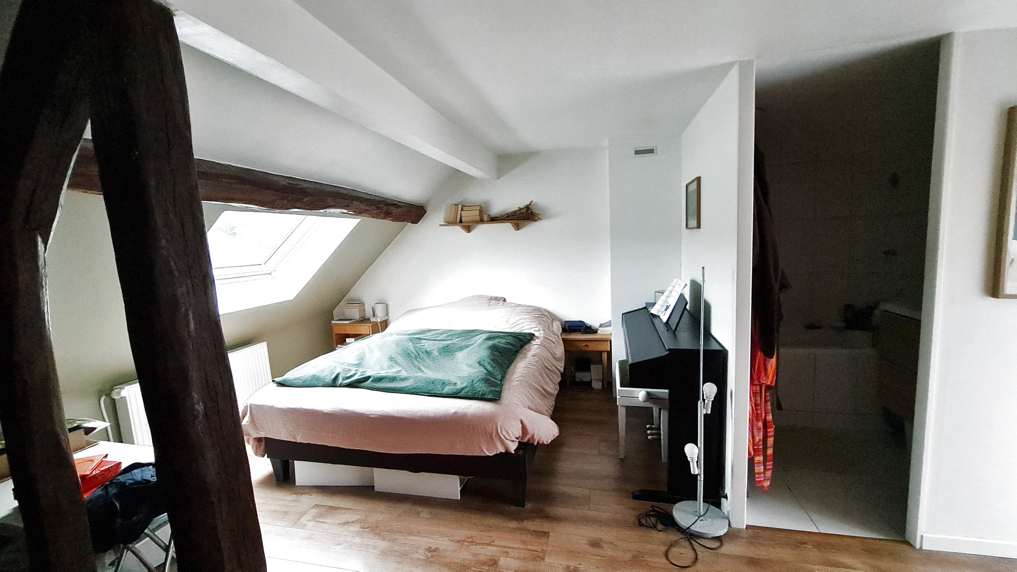 Les combles aménagés en une grande chambre avec salle de bains et une pièce attenante pouvant servir de chambre d'enfant ou de bureau pour le télé travail.