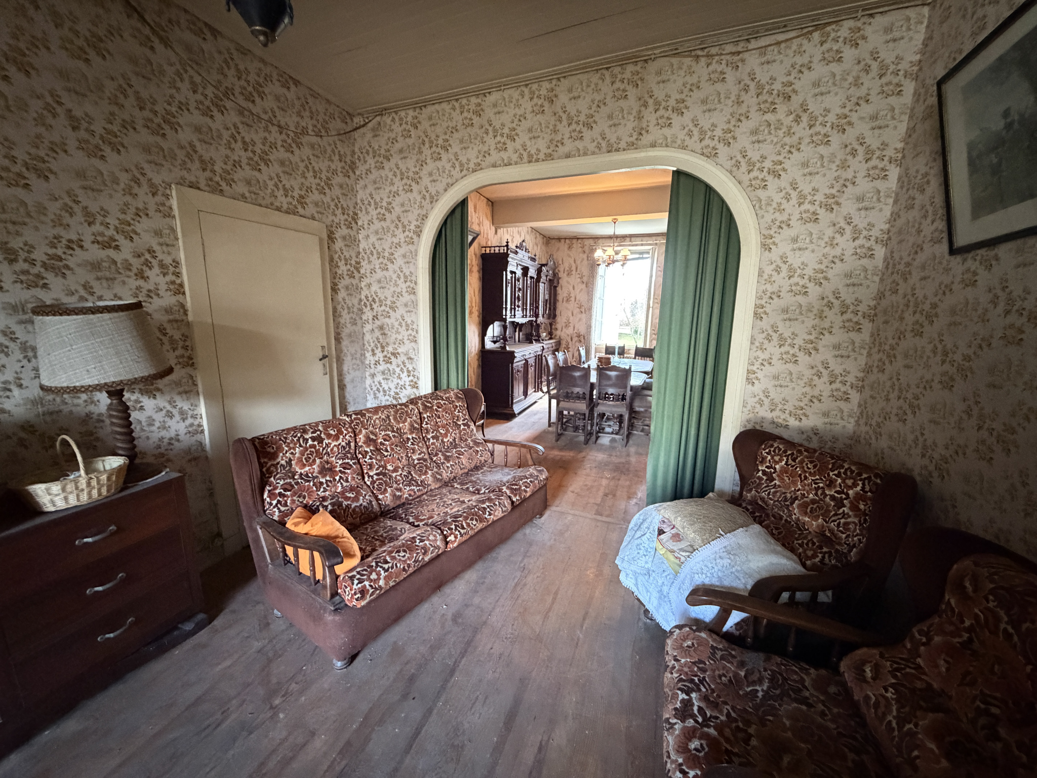 Maison à rénover offrant de beaux volumes. Elle comprend en rez-de-chaussée une entrée, salon/séjour, cuisine et WC ; à l'étage un palier desservant 4 chambres, une salle de bains, un WC et au-dessus un grenier aménageable de 60 m2.