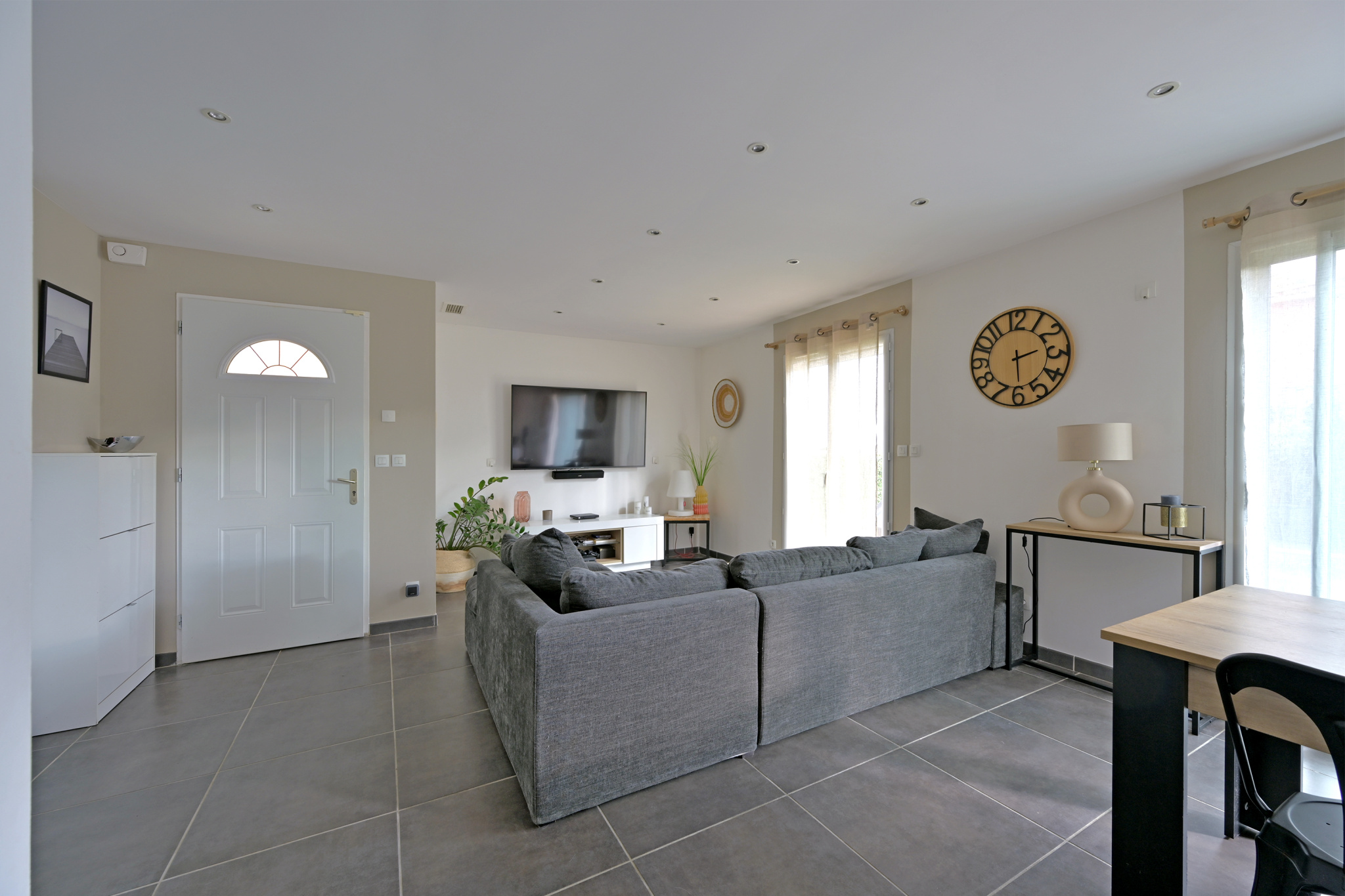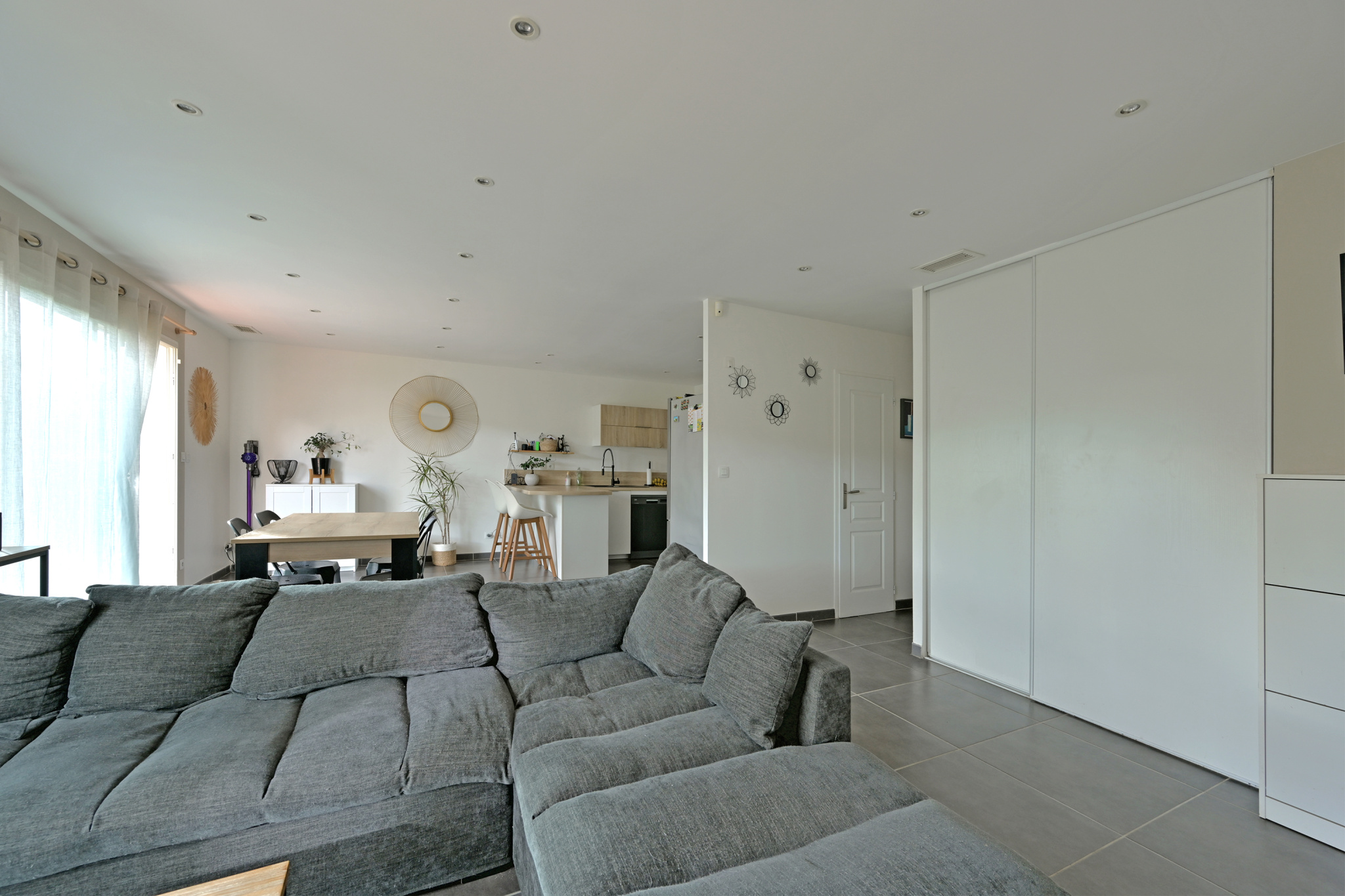 De plain-pied d'une surface de 88 m2 , elle propose une spacieuse pièce de vie avec cuisine ouverte, 3 chambres, salle d'eau et wc séparés.