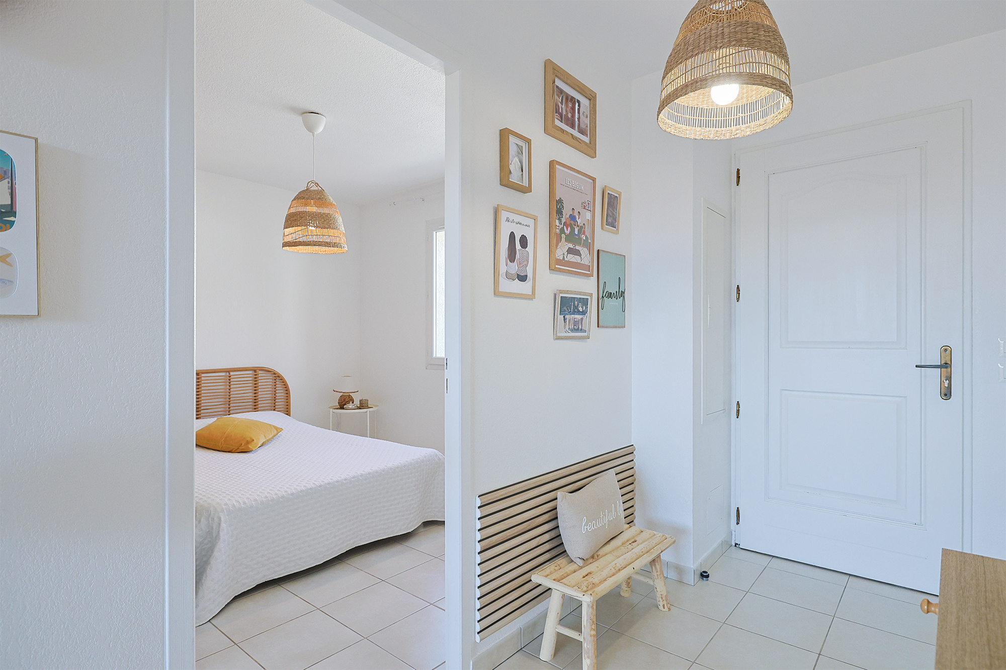 Au premier niveau : une entrée donnant sur une pièce de vie exposée plein SUD, l'ensemble climatisé avec une cuisine ouverte équipée d'un îlot central s'ouvrant sur une terrasse ombragée de 28m2 avec vue dégagée sans vis à vis.