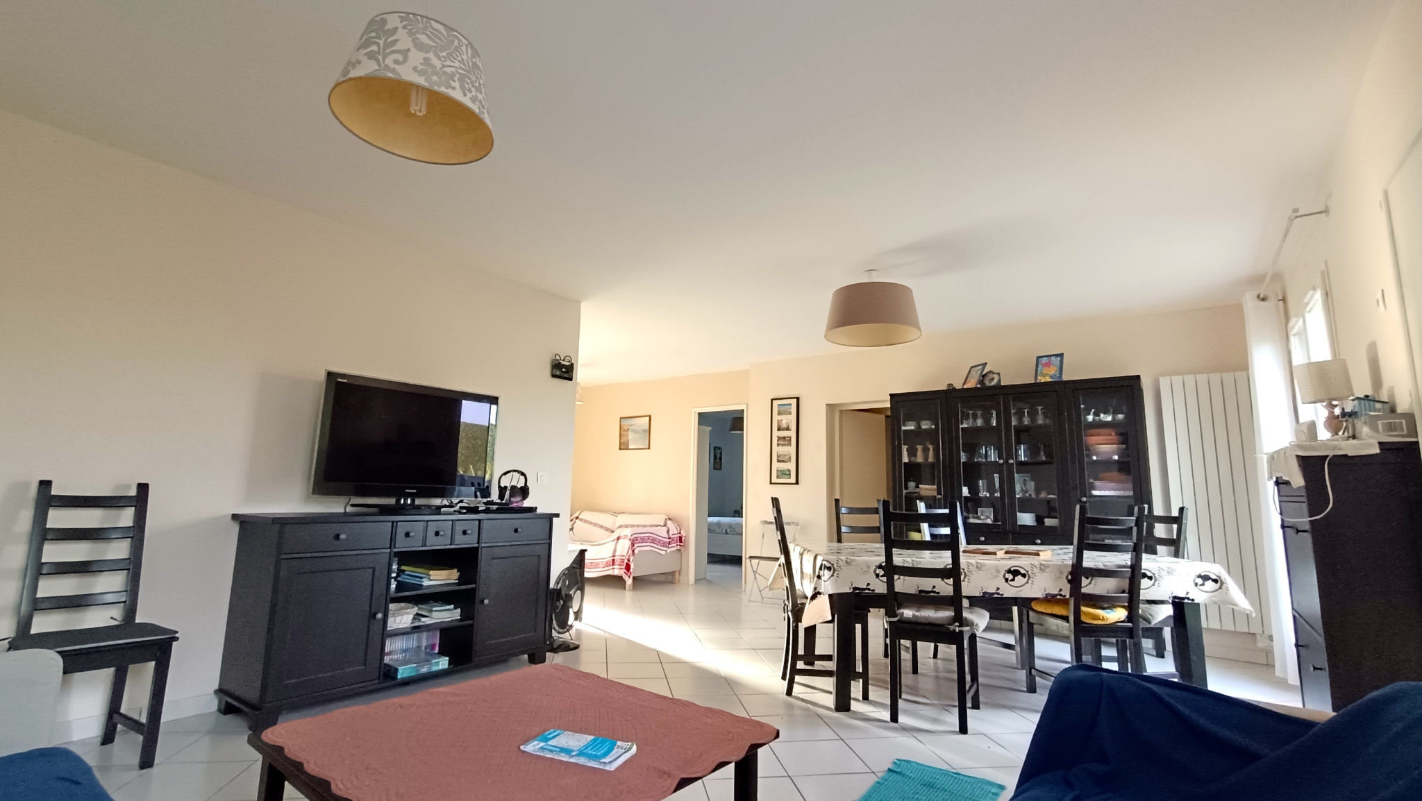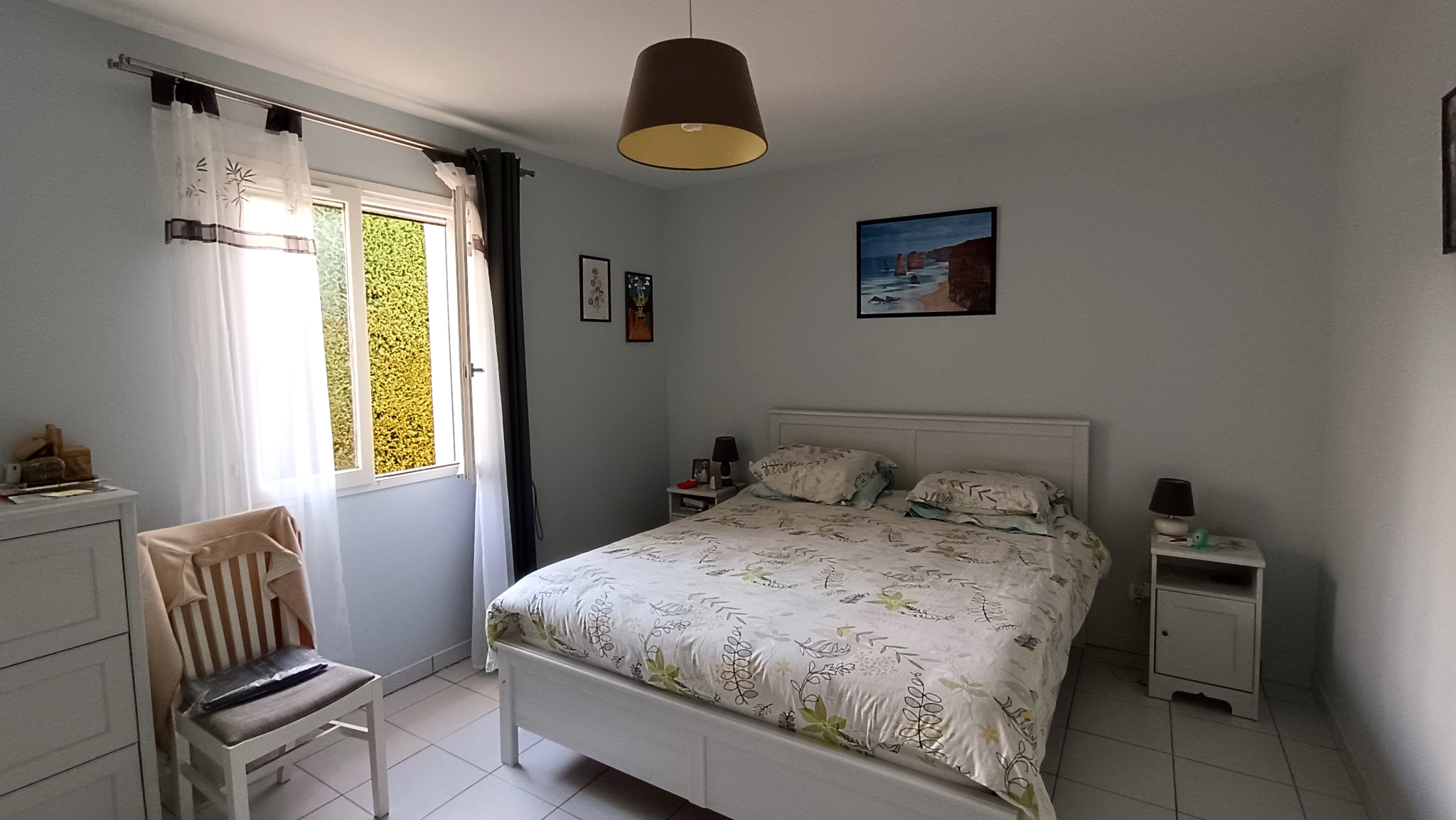 - LG IMMO - Cabinet GARÉCHÉ vous propose cette maison de plain-pied comprenant, entrée, séjour/salon, cuisine équipée et aménagée, 4 chambres, dégagement, salle d'eau avec wc, salle de bain, w.c indépendant, véranda. Local vélo et abri de jardin. Le tout sur un terrain clos et arboré de 1177m2.