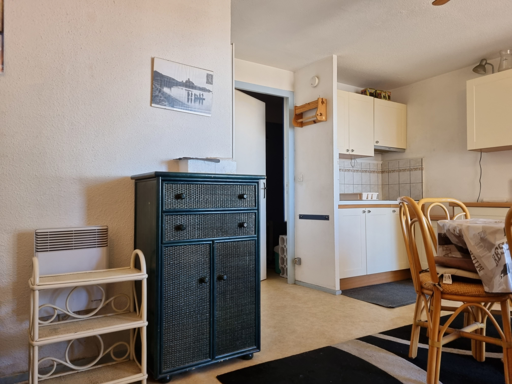 Situé au 1er étage sans ascenseur, appartement comprenant un séjour avec coin cuisine équipée, une chambre, une salle d'eau avec WC et une loggia avec la vue sur la mer.