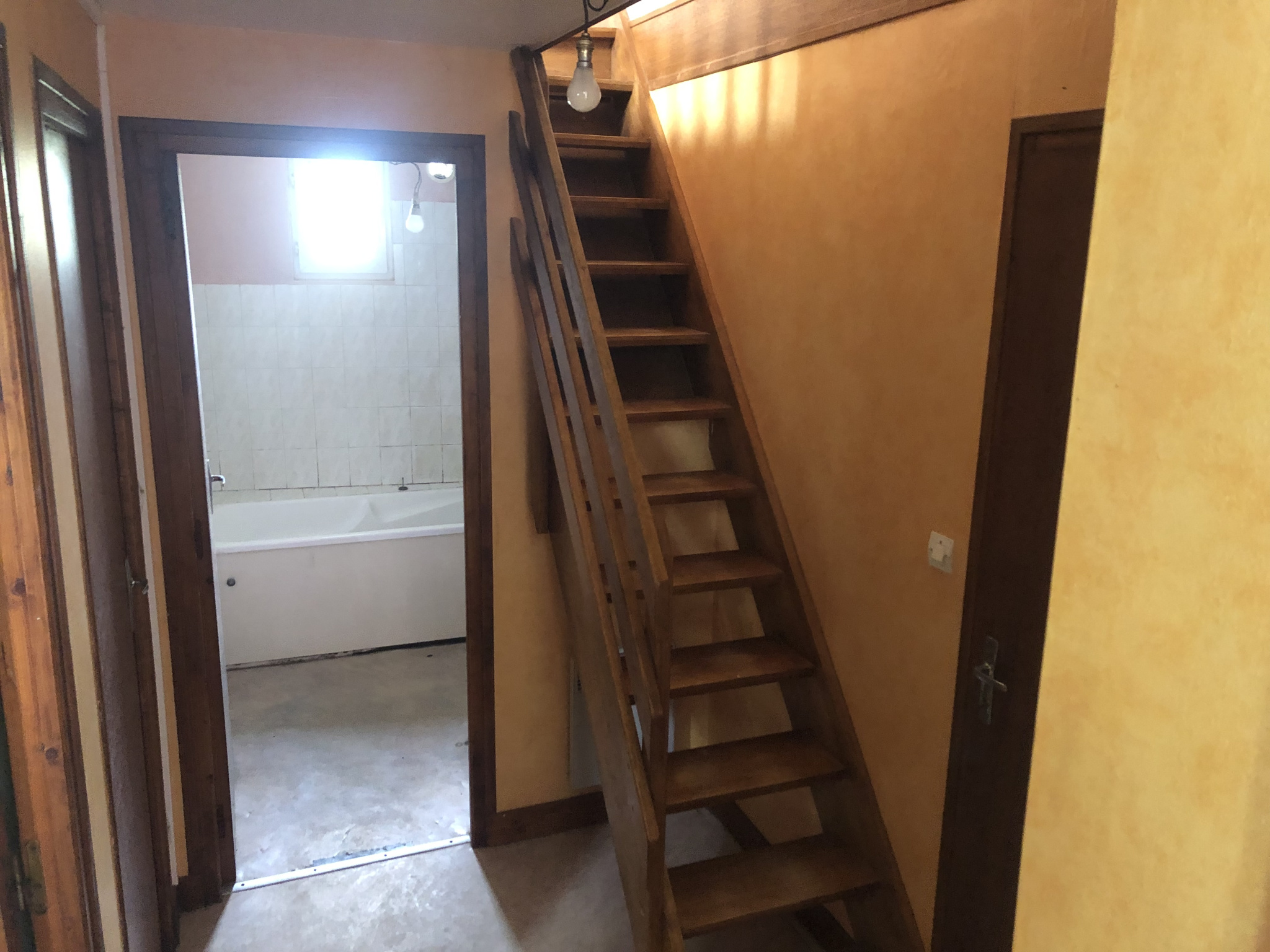 La maison se consitue d'une entrée, salon avec cheminée à l'âtre, séjour, cuisine, chambre, bureau chambre, salle de bain, couloir et cellier avec cumulus. A l'étage , une chambre mansardée et un grenier aménageable.Double vitrage PVC, chauffage électrique, assainissement individuel.