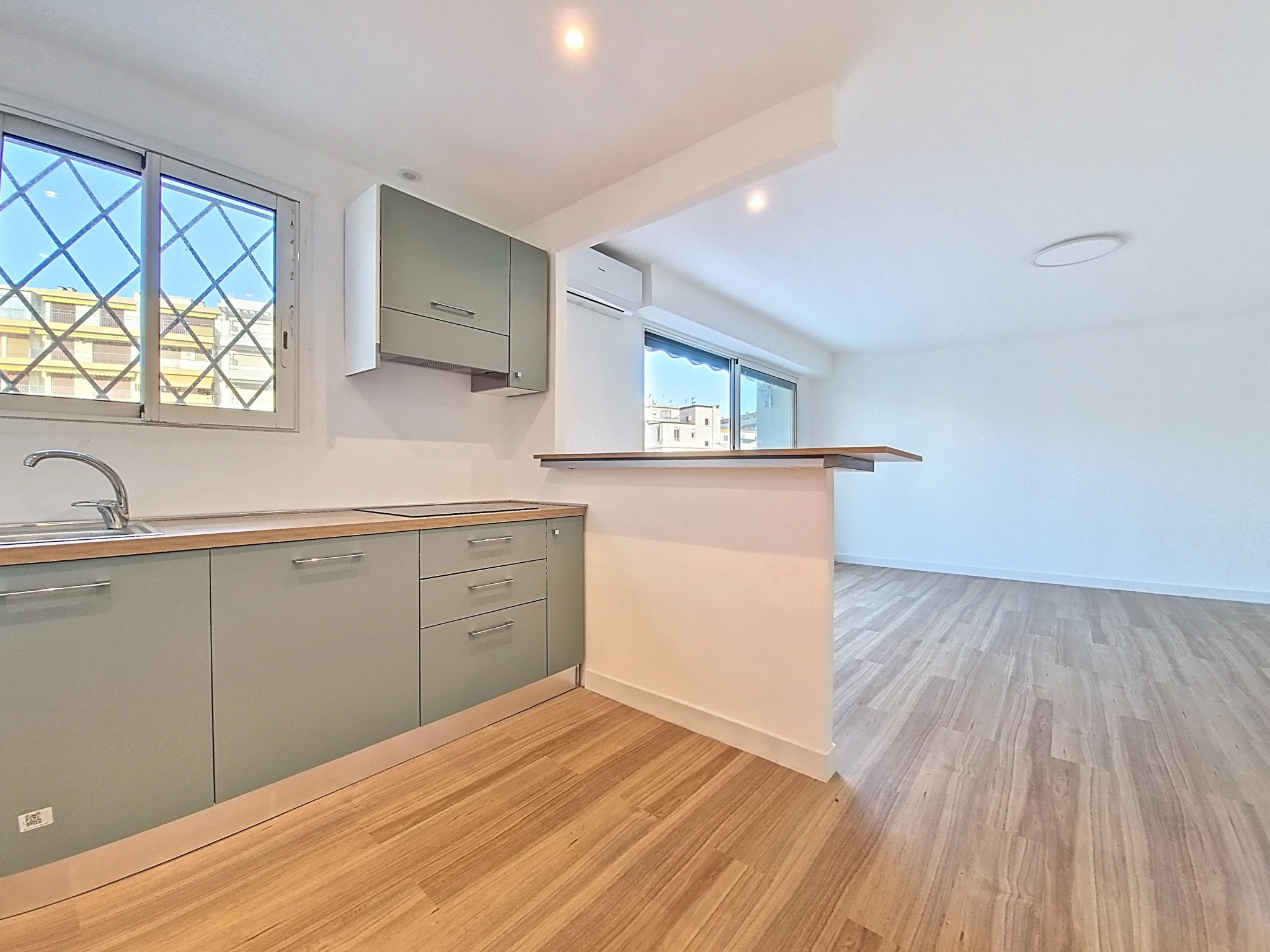 La cuisine moderne ouverte sur la pièce principale donne accès à une vaste terrasse de 25 m2 qui constitue un véritable espace de vie supplémentaire. Baignée de soleil, elle permet de profiter pleinement du climat méditerranéen, que ce soit pour se détendre ou recevoir.