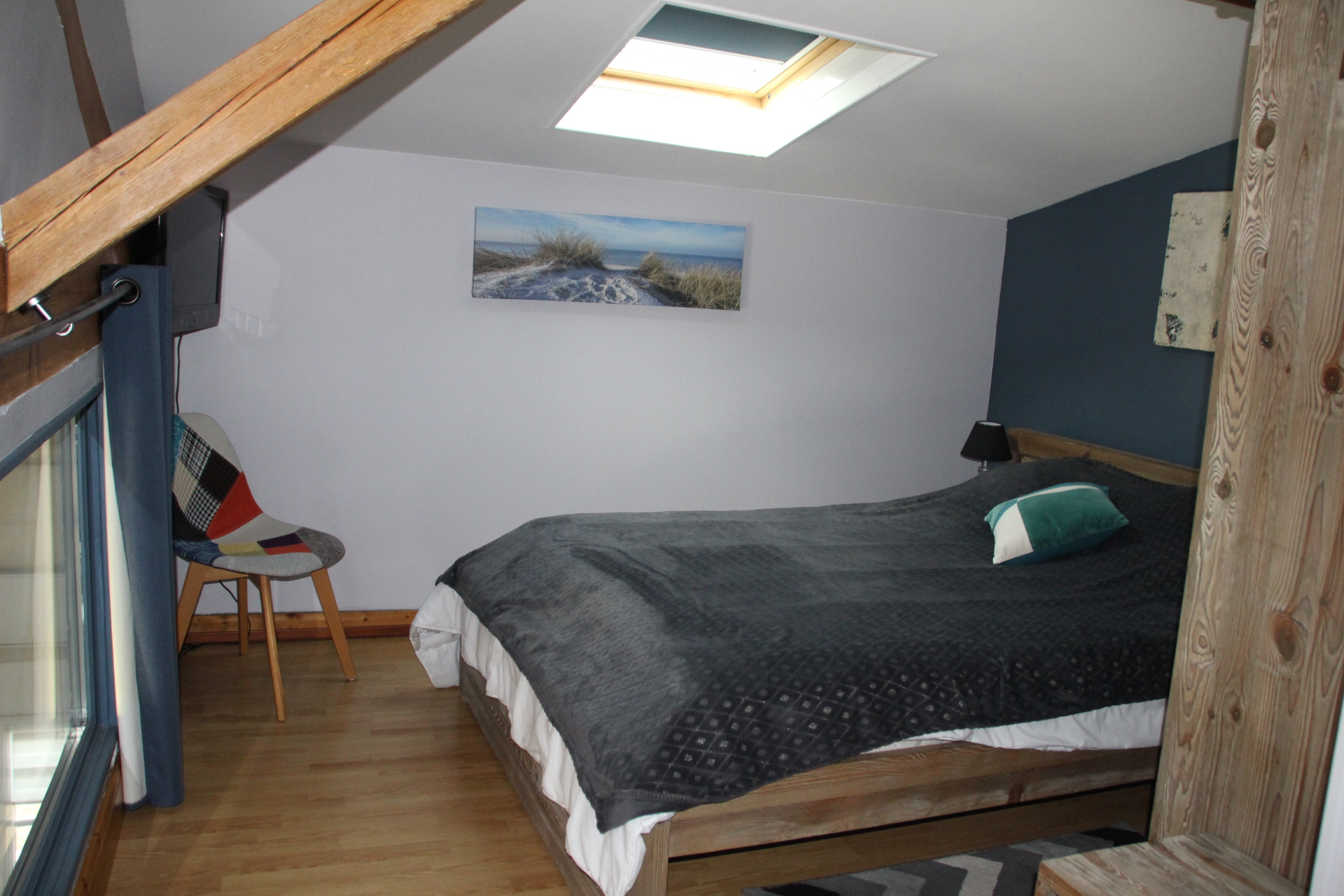 - Au premier étage : entrée, séjour/cuisine ouvrant sur balcon/terrasse, chambre, salle de bains, W.C.