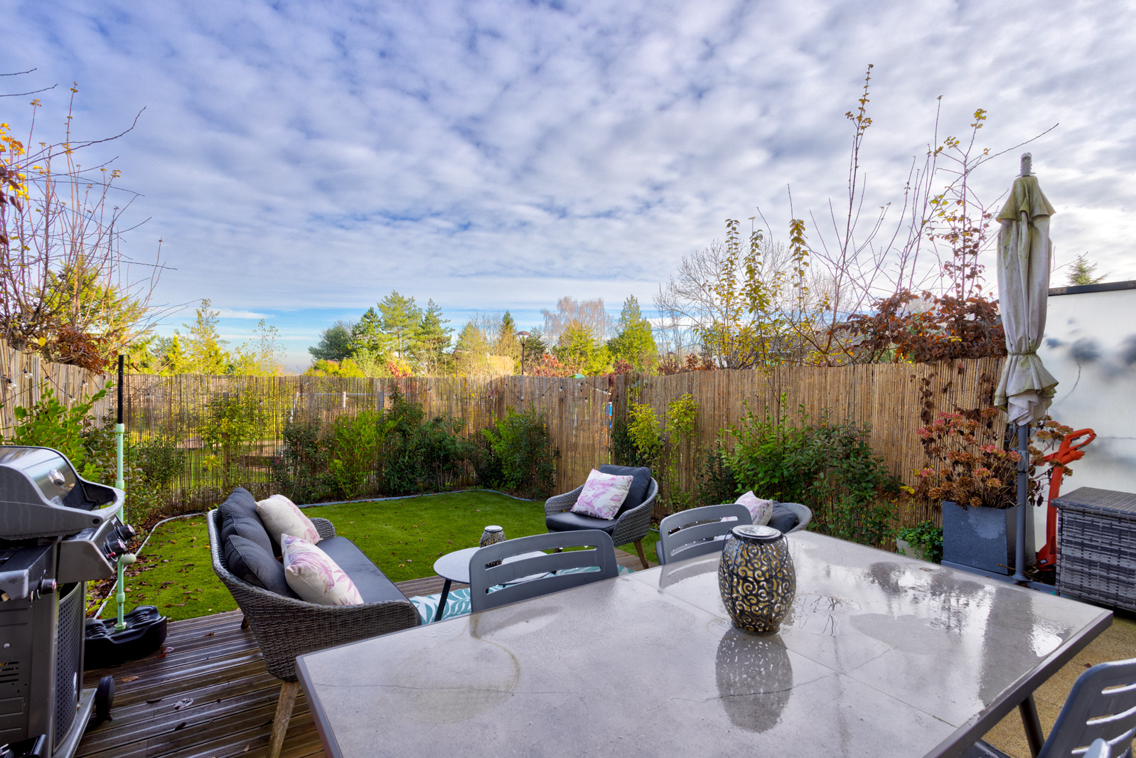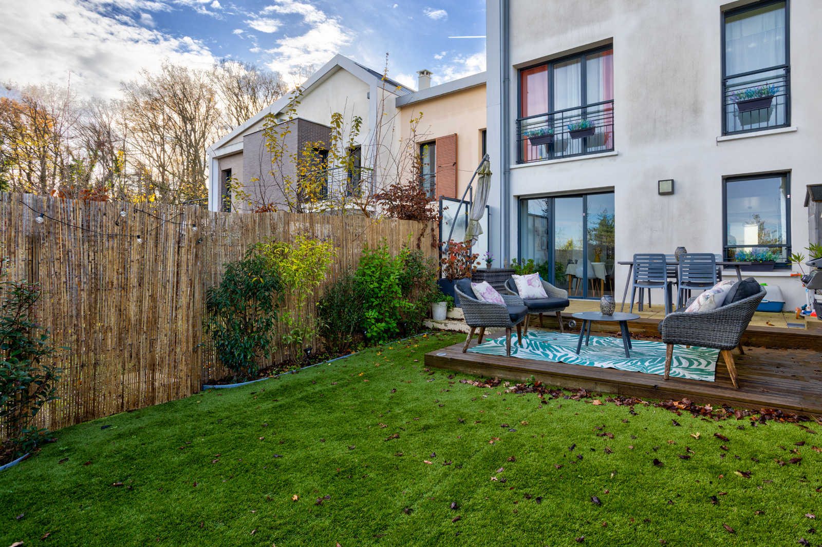 Espace extérieurs : Jardin et terrasse à l'arrière de la maison idéal pour profiter de l'extérieur en toute tranquilité, jardinet à l'avant de la maison offrant un accueil soigné et agréable.