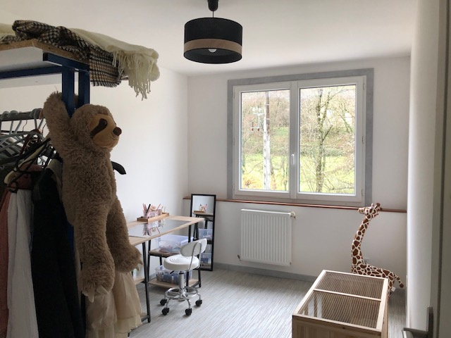 A l'étage vous disposez d'un hall d'entrée donnant accès à une grande pièce à vivre ( 50 m2 ) avec cuisine moderne équipée , 3 chambres , une salle d'eau et WC .