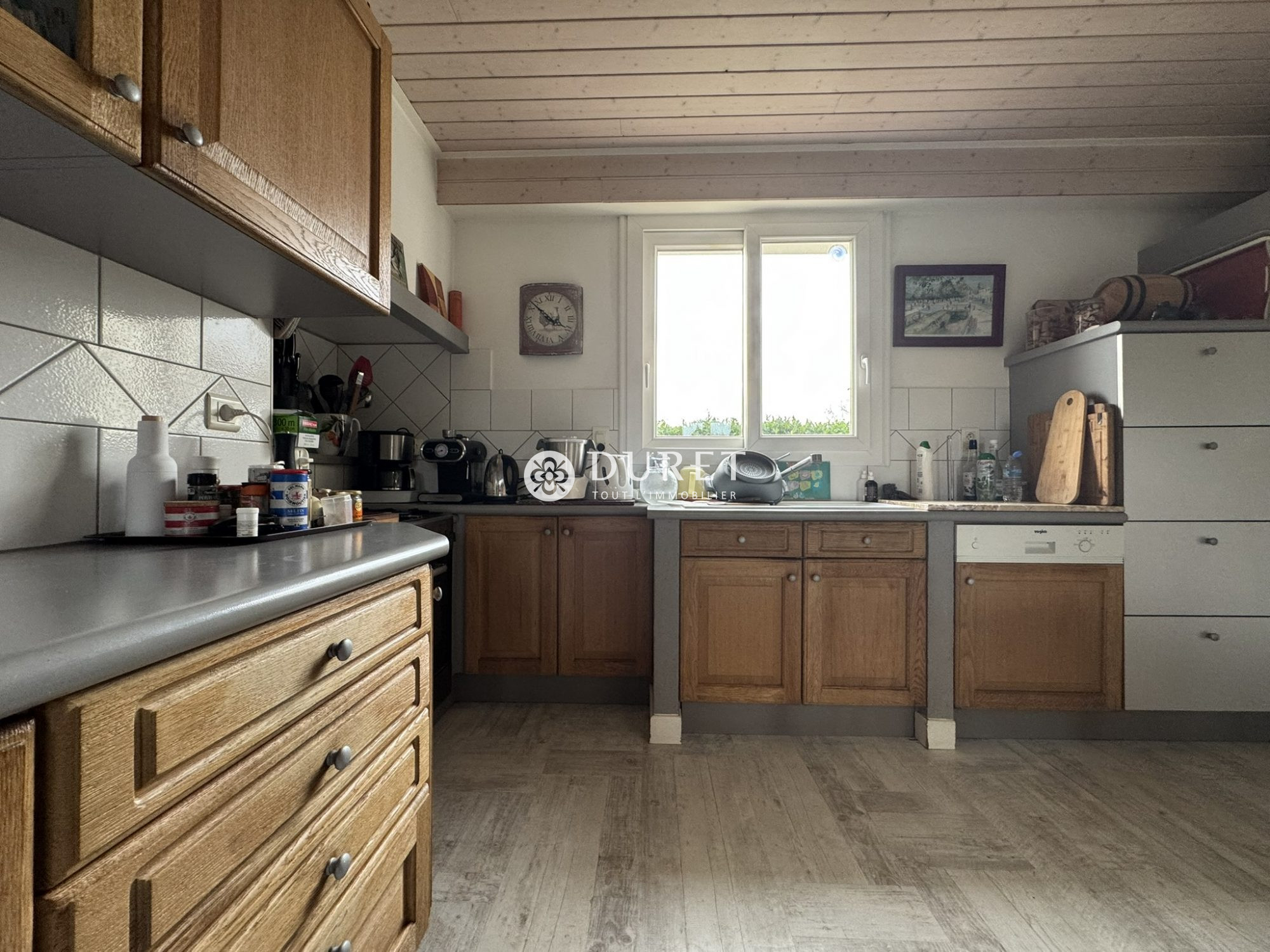 La maison s'ouvre sur une vaste pièce de vie lumineuse de 53 m², comprenant une cuisine aménagée et équipée ouverte sur le séjour. L'habitation dispose de cinq chambres, dont une suite parentale récente, aménagée en 2021 avec sa propre salle d'eau, offrant un confort moderne et intime. La salle de bain principale, partiellement rénovée, propose à la fois une douche et une baignoire balnéo. Le bien comprend également un cellier fonctionnel, un dégagement avec placards et une petite cave pratique.