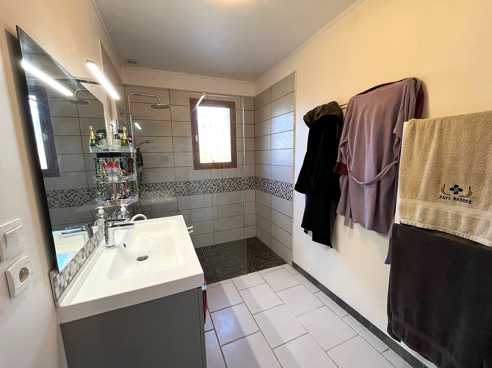 Maison T5 très lumineuse, bien exposée, agréable à vivre en toute saison, de plain-pied de 134 m² avec de nombreuses prestations et parfaitement entretenue.