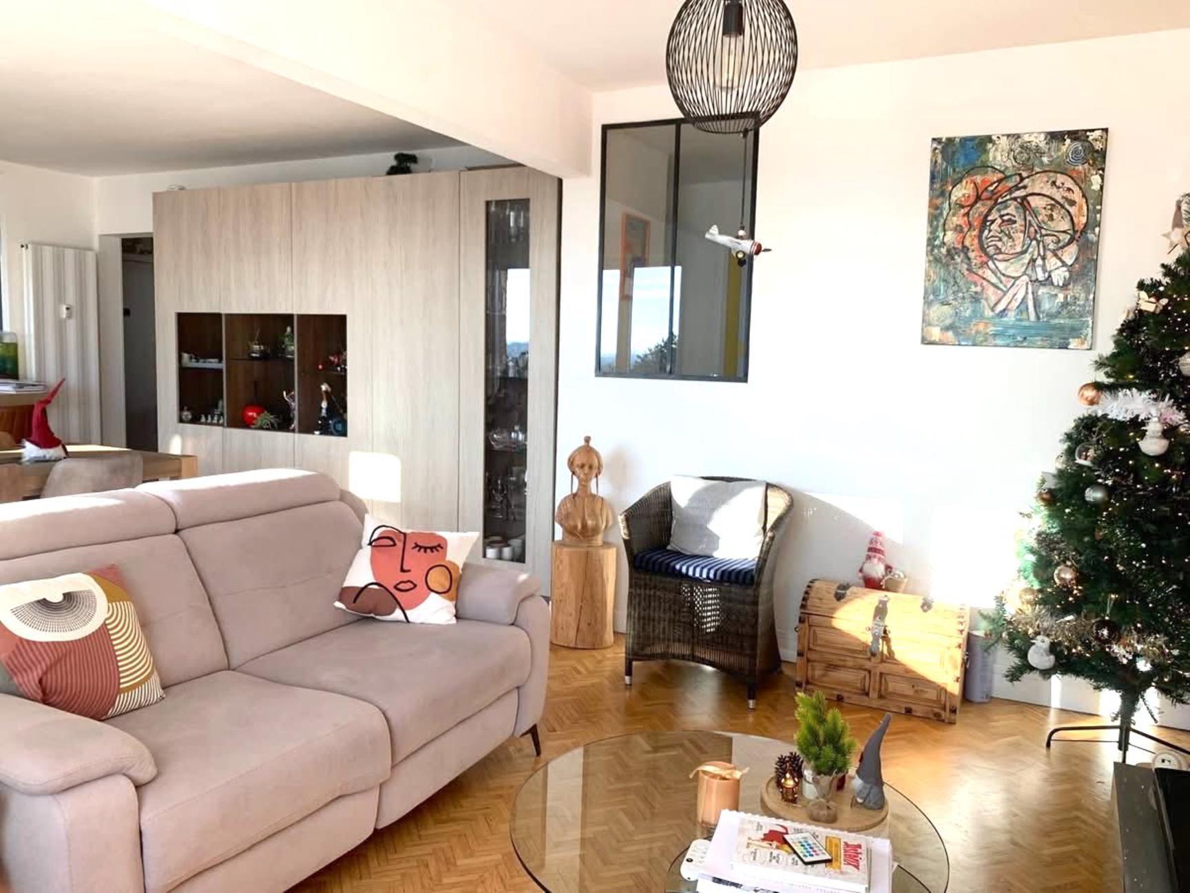 - Un salon / séjour confortable et son parquet massif en point de Hongrie, sa terrasse exposée SUD OUEST et sa belle vue dégagée.