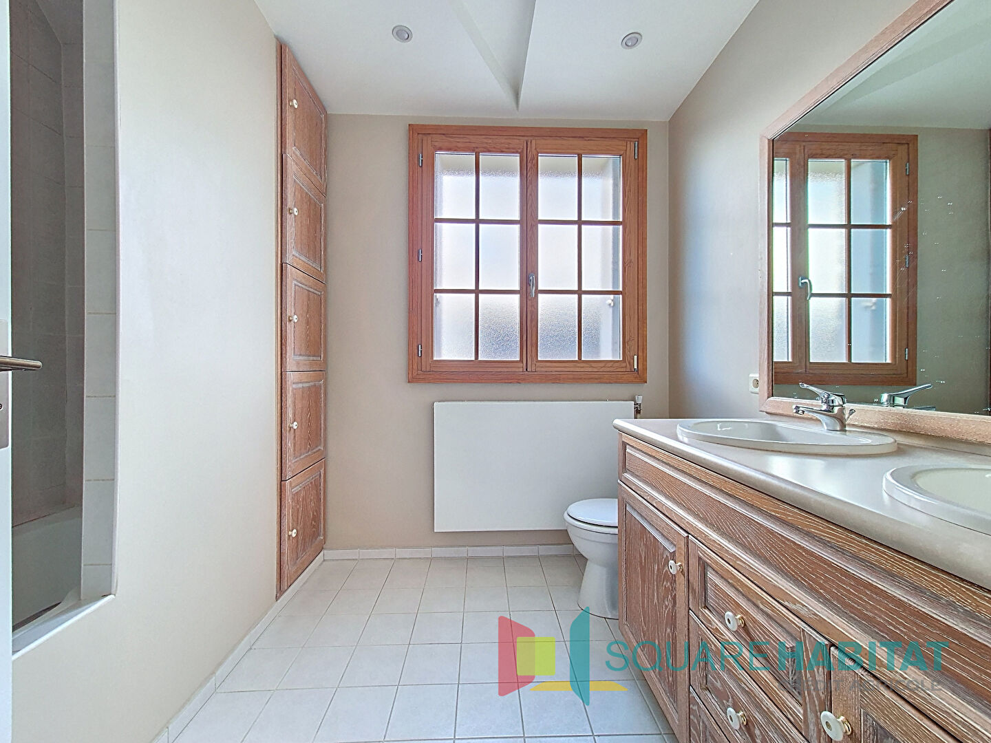 - Au rez-de-jardin : double garage de 40 m², buanderie, bureau de 15 m² avec un accès indépendant (idéal pour activité professionnelle, atelier, profession libérale), cave.